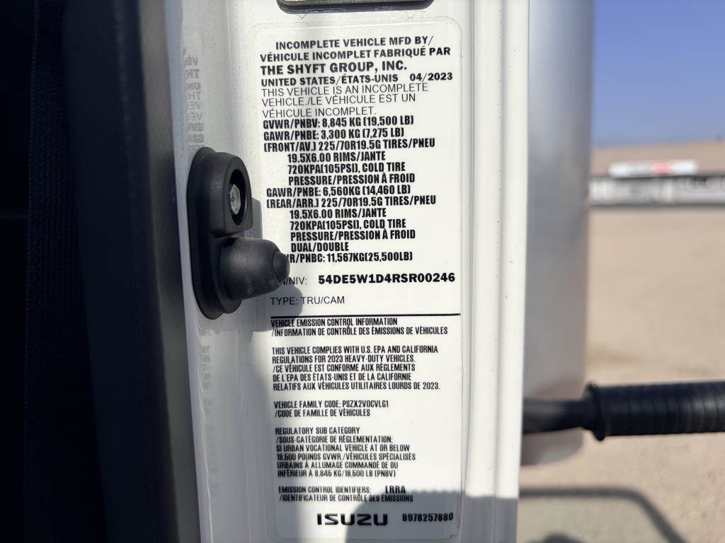VIN: 54DE5W1D4RSR00246 6.6L V8 Gasoline, Automatic, AC, Heat, AM/FM/CD, Cruise Control, Power Windows, Power Locks, Backup Camera, 20' Cargo Box, Rear Roll Up Door, Palfinger Tuck Away 3,300LB Hydraulic Lift Gate, 225/70R19.5 Tire Size, Dual rear Wheel, 19,500LB GVWR Odometer Reading: 008,059 Disclaimer: Mileage and hours are visually observed and not verified.