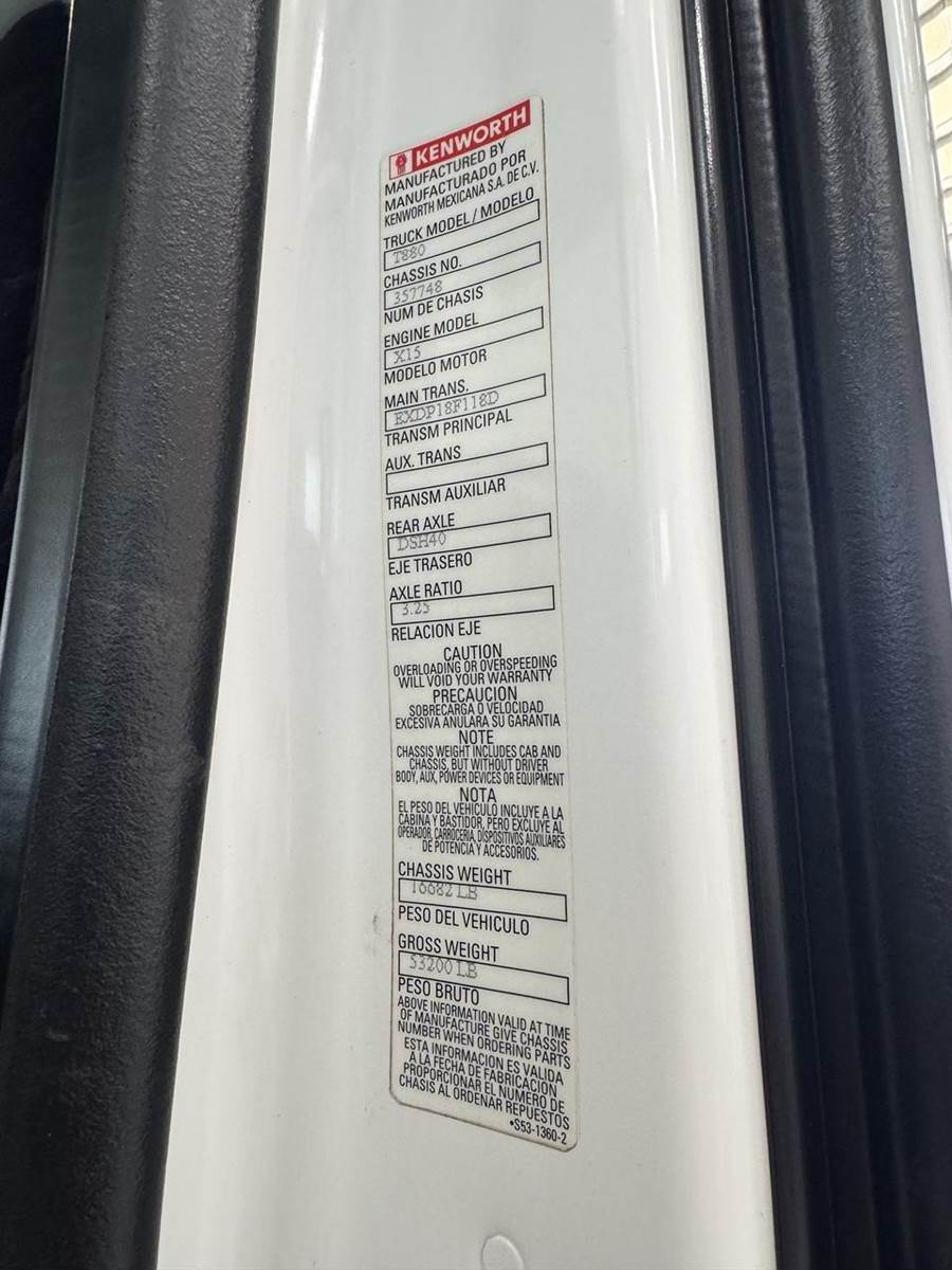 2020 KENWORTH T880 DAYCAB, MILEAGE:332,210, PACCAR MX-13 455 HP, 10 SPD MANUAL TRANSMISSION, 46K REARS, 3.42 GEAR RATIO, AIR RIDE SUSPENSION...