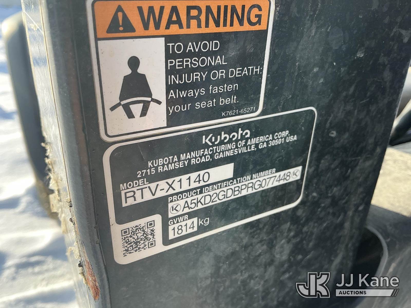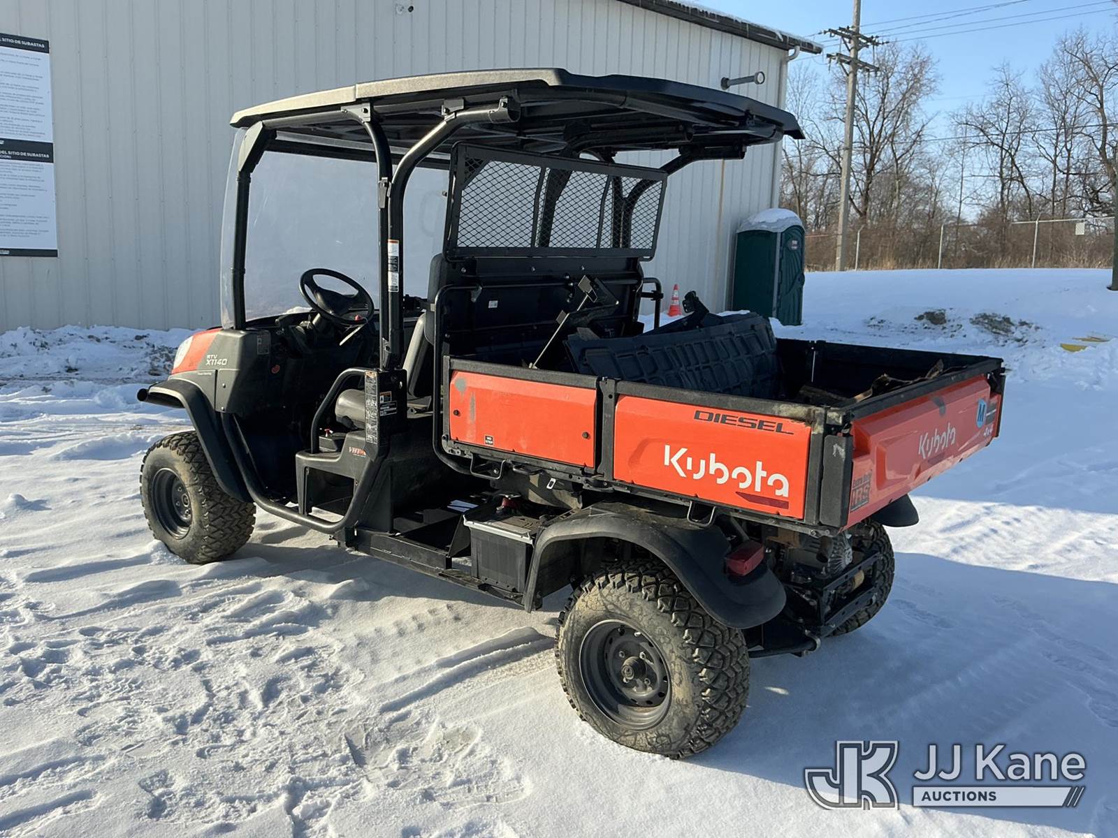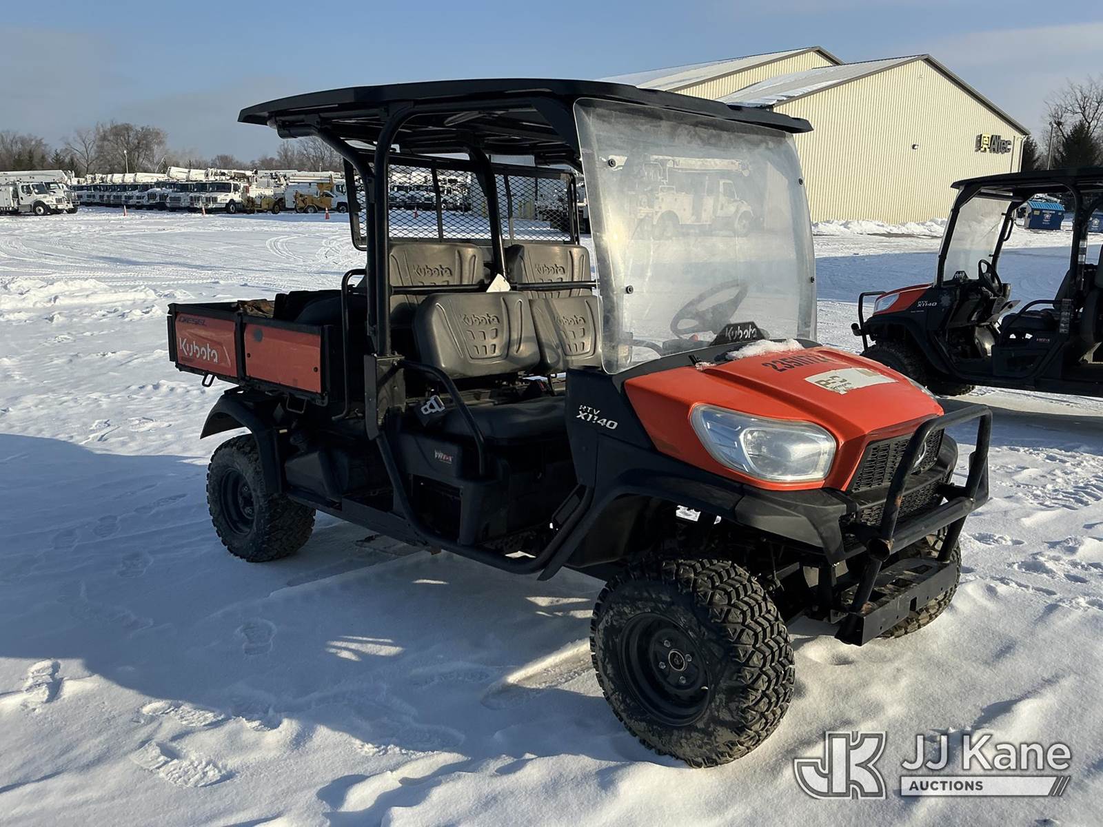 2024 Kubota RTVX1140 4x4 Yard Cart, s/n A5KD2GDBPRG077448, Kubota diesel, Hydrostatic, (1,686 miles) (No Title) (Runs) (Won't Move, Transmission Issues. Parts Removed, No Key) NOTE: This unit is being sold AS IS/WHERE IS via Timed Auction and is located in Fort Wayne, IN. For more information & removal arrangements please contact Office Staff @ (260) 450-9822. Load out by appointment only, Buyer/Hauler must present copy of paid invoice upon arrival. Purchaser acknowledges ALL lots must be removed within (10) business days of Auction, or a storage fee may be incurred. For load out and pick up information, please reference the hauler sheet sent out after purchase. (Buyer is responsible for removal. Assistance by consignor or JJ Kane Auctions is not assured.)