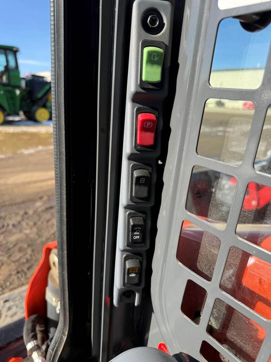 64hp 4 Cylinder Kubota Diesel, 1950lbs Operating Capacity, Hand Controls, Enclosed Cab w/Heat & A/C, SKR Ride Control System, 10-16.5 Tires, 68" Low Profile Bucket, Hydraulic Quick Attach, Radio,