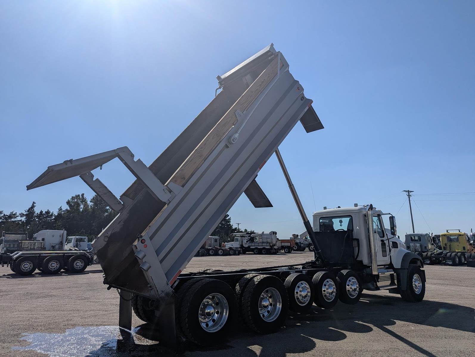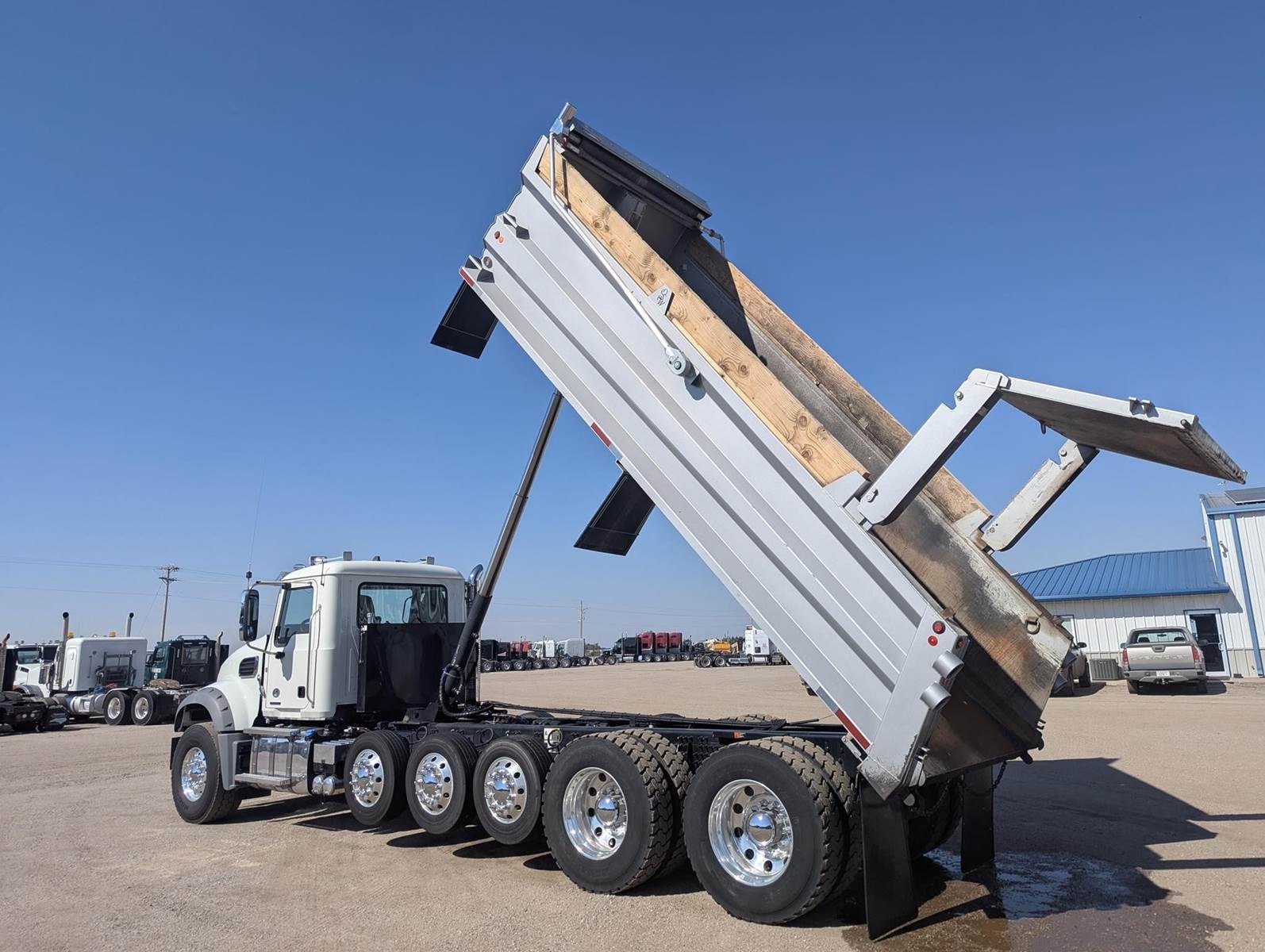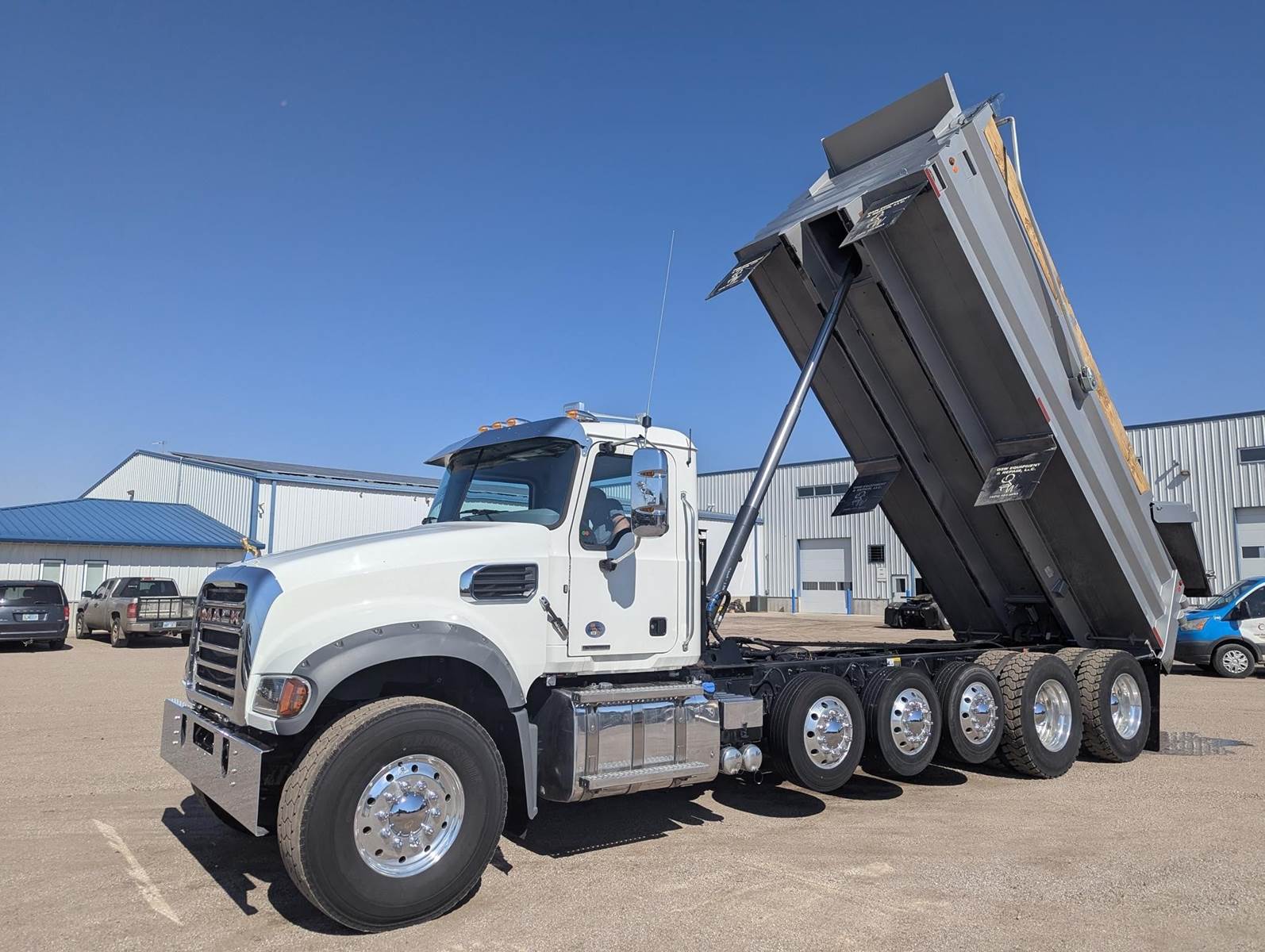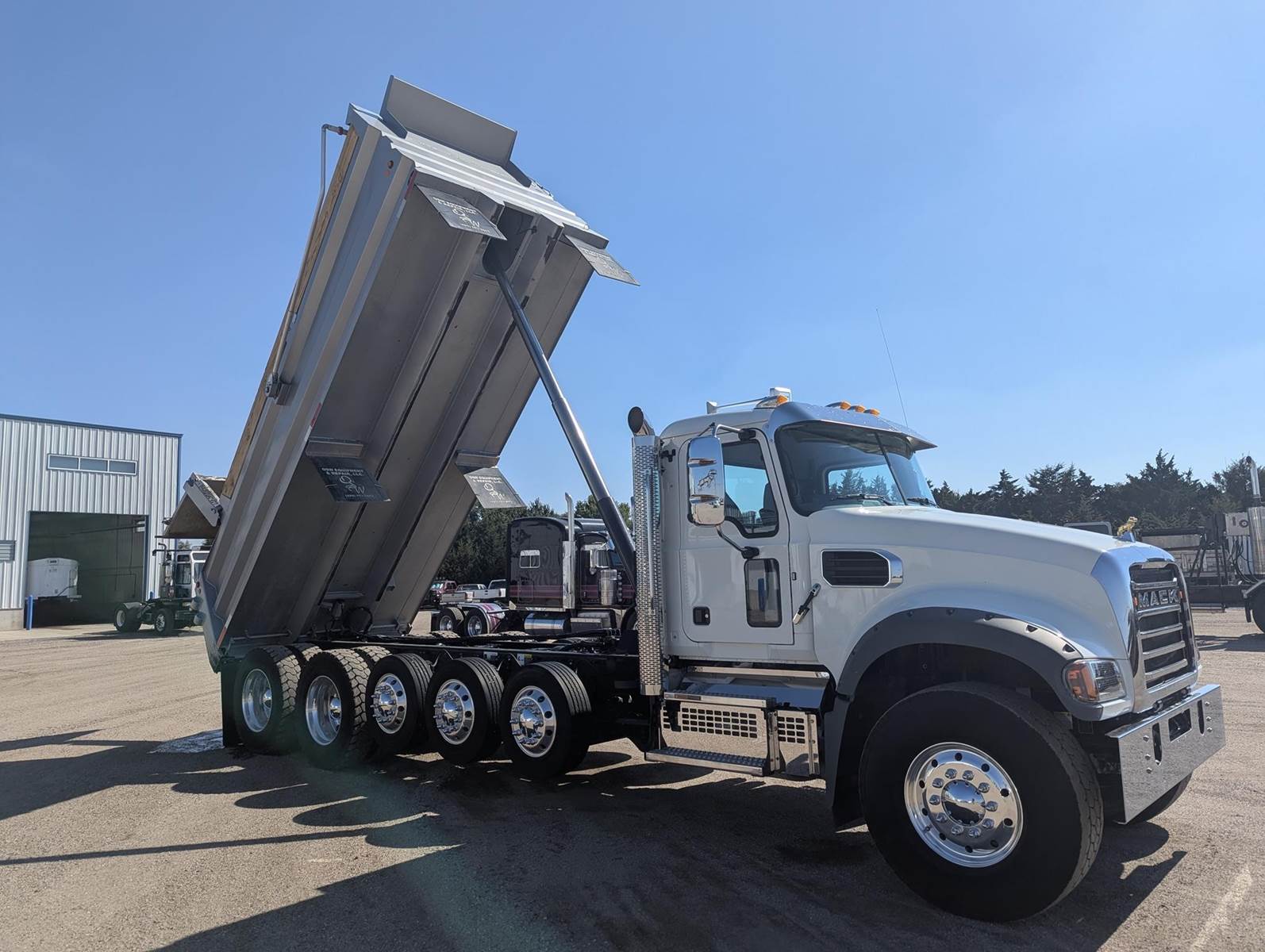 2024 Mack Dump Truck, 500hp Mack MP8, 12spd Automated Transmission, 41k Mi, Air ride suspension, 3 Lift Axles, 273in Wheelbase, Electric Tarp, Nationwide Delivery Available.