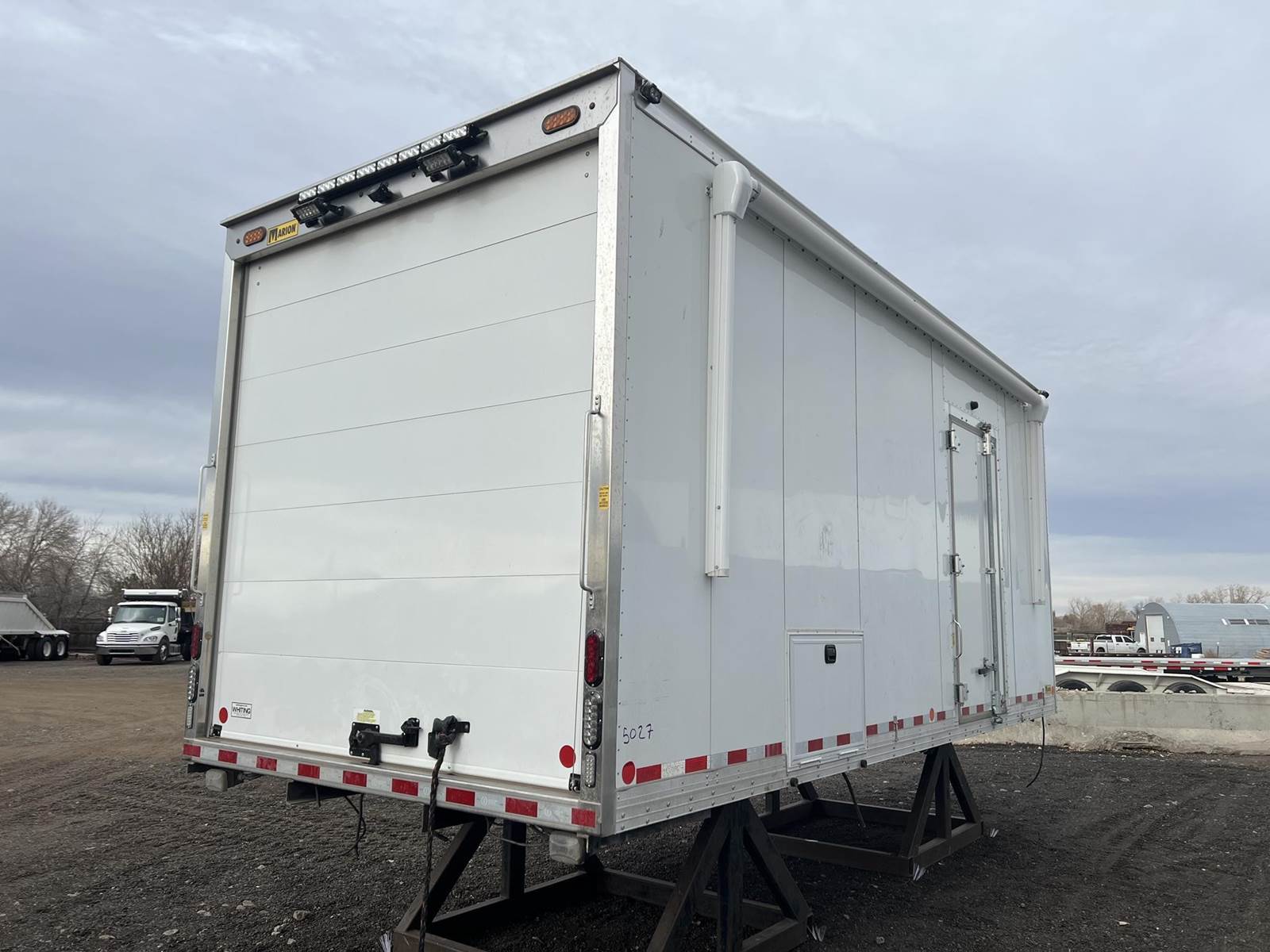 20'L 102"W 102"H Marion, Van Body, Reefer not included but available, plywood siding, plywood, roof, Hardwood Floor, Roll out awning Rear roll up door, Good Condition, Call DTI Trucks for more information and a shipping quote.