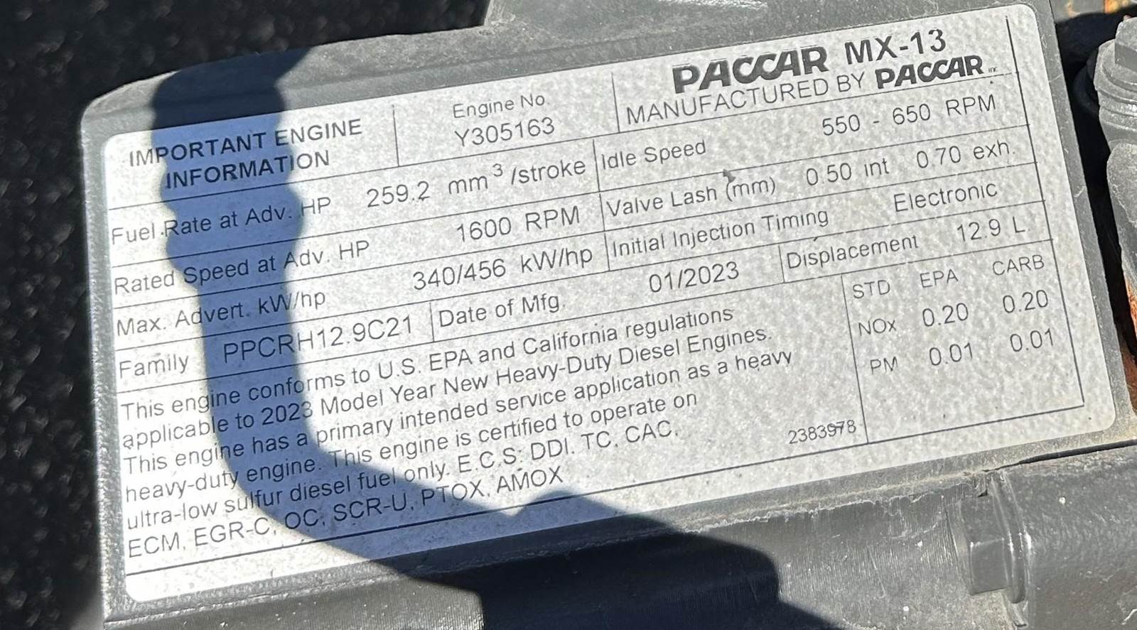 Engine: PACCAR MX-13, 12.9L, 455 HP