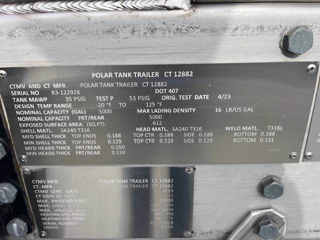 Unit T-200, 2020 Polar, DOT 407, Barrel material SA240-T316-T316L, 7000 Gallons, Rear discharge, Straight round shape, Stainless...