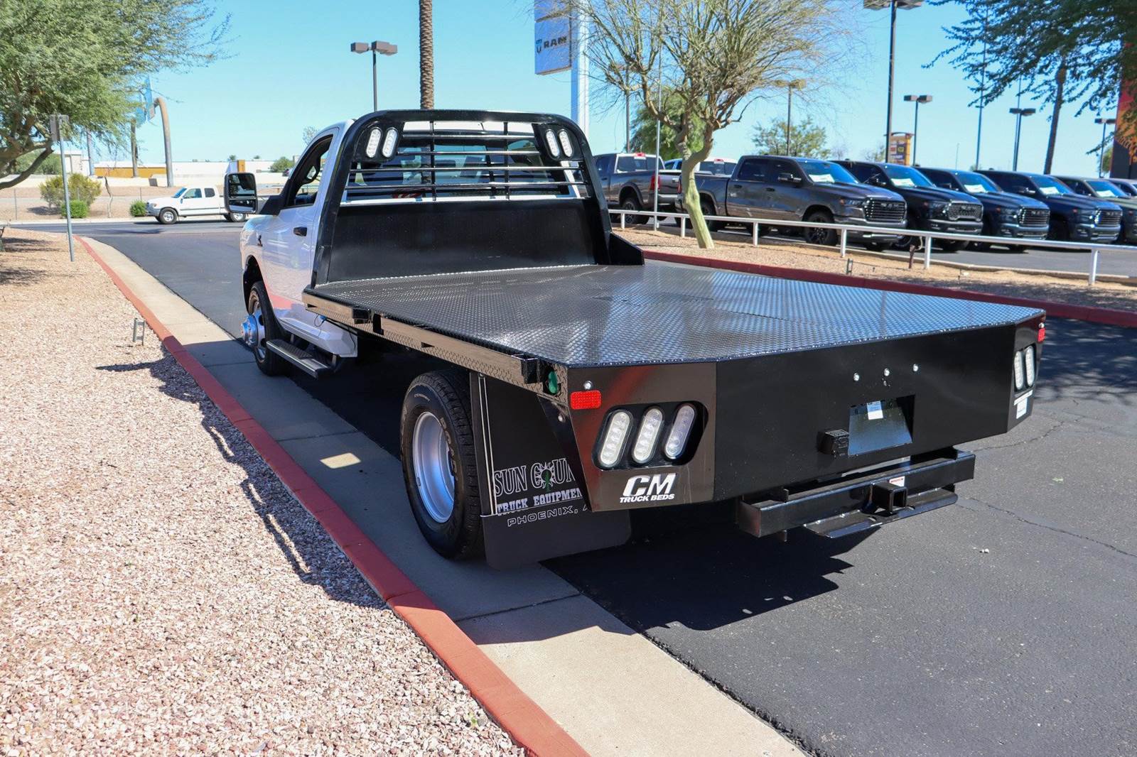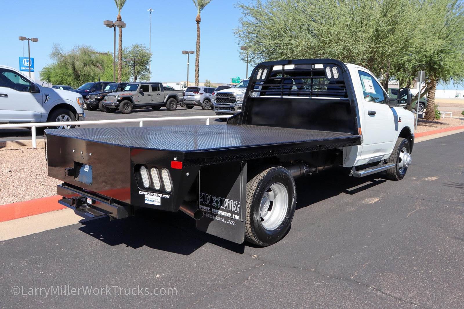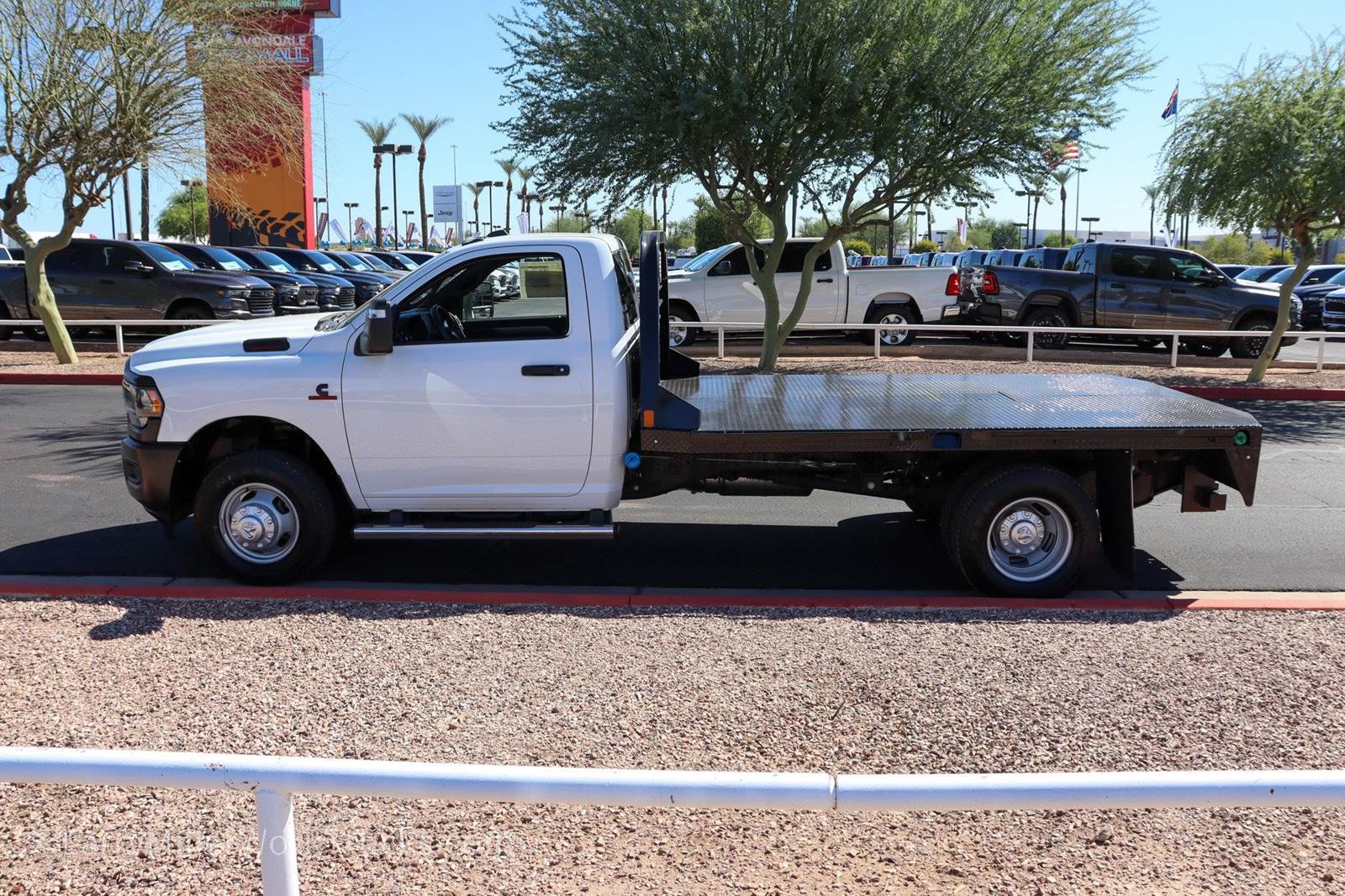New 2024 Ram 3500 Reg Cab 4x2 Diesel 11' CM Gooseneck Flatbed work truck for sale.Bright White Clearcoat 2024 Ram 3500 Tradesman 167.5 WB RWD Aisin 6-Speed Automatic Cummins 6.7L I6 Turbodiesel 102 mph Maximum Speed, 115V Auxiliary Power Outlet, 3.73 Axle Ratio, 4 Speakers, 4-Wheel Disc Brakes, 40/20/40 Split Bench Seat, 400W Inverter, ABS brakes, Air Conditioning, Ambulance Prep Group, Black Exterior Mirrors, Black Exterior Truck Badging, Black Key Fob, Center Hub, Chrome Tubular Side Steps, Compass, Delay-off headlights, Delete Front Center Seat, Door Sill Scuff Pads, Driver door bin, Dual front impact airbags, Dual rear wheels, Electronic Stability Control, Emergency communication system: SiriusXM Guardian, Exterior Mirrors Courtesy Lamps, Exterior Mirrors w/Heating Element, Exterior Mirrors w/Supplemental Signals, For Details, Visit , Front 1-Touch Down Power Windows, Front anti-roll bar, Front Bucket Seats, Front Fog Lamps, Fully automatic headlights, Global Telematics Box Module (TBM), Glove Box, GPS Antenna Input, Halogen Quad Headlamps, HD Vinyl 40/20/40 Split Bench Seat, Integrated Voice Command w/Bluetooth, Manual Adjust 4-Way Driver Seat, Manual Adjust 4-Way Front Passenger Seat, Manual Folding Exterior Mirrors, Manual Telescoping Mirrors, Map/Courtesy Lamp, Matte Black Grille Surround, Mirror Power Heat Fold Telescope Black, Mirror Running Lights, Occupant sensing airbag, Outside temperature display, Overhead Console, Overhead Cupholder Lamp, ParkView Rear Back-Up Camera, Passenger door bin, Passenger vanity mirror, Power Adjust Mirrors, Power steering, Power-Adjustable Convex Aux Mirrors, Quick Order Package 2YA Tradesman, Radio data system, Radio: Uconnect 3 w/5 Display, Rear A/C Heater Prep Group, Rear anti-roll bar, Rear Backup Alarm, Rear Dome Lamp, Remote Keyless Entry, Remote USB Port - Charge Only, Speed control, Speed Sensitive Power Locks, Tachometer, Temperature & Compass Gauge, Tilt steering wheel, Tow Hooks, Traction control, Tradesman Level 1 Equipment Group, Upgraded Door Trim Panel, Variably intermittent wipers, Voltage Monitoring Auto Idle Up System, Voltmeter, Wheels: 17 x 6.0 Argent Steel.At Larry H Miller Dodge Ram Avondale, we believe in providing our guests with a quality experience. With one of the widest used-car inventory selections in the valley, our seasoned sales professionals will ensure that your needs and wants are satisfied during the purchase of your next vehicle. Feel free to browse our online listings, and please reach out with any additional questions or requests. We are always happy to assist and ensure that your purchase is easy and enjoyable.Ambulance Prep Group (Rear A/C Heater Prep Group), Quick Order Package 2YA Tradesman (Black Exterior Truck Badging, Black Key Fob, Door Sill Scuff Pads, Glove Box, Halogen Quad Headlamps, Map/Courtesy Lamp, Matte Black Grille Surround, and Rear Dome Lamp), Tradesman Level 1 Equipment Group (Black Exterior Mirrors, Exterior Mirrors Courtesy Lamps, Exterior Mirrors w/Heating Element, Exterior Mirrors w/Supplemental Signals, Front 1-Touch Down Power Windows, Manual Folding Exterior Mirrors, Manual Telescoping Mirrors, Mirror Power Heat Fold Telescope Black, Mirror Running Lights, Overhead Console, Overhead Cupholder Lamp, Power Adjust Mirrors, Power-Adjustable Convex Aux Mirrors, Remote Keyless Entry, Speed Sensitive Power Locks, and Upgraded Door Trim Panel), 102 mph Maximum Speed, 115V Auxiliary Power Outlet, 3.73 Axle Ratio, 4 Speakers, 4-Wheel Disc Brakes, 40/20/40 Split Bench Seat, 400W Inverter, ABS brakes, Air Conditioning, Center Hub, Chrome Tubular Side Steps, Compass, Delay-off headlights, Delete Front Center Seat, Driver door bin, Dual front impact airbags, Dual rear wheels, Electronic Stability Control, Emergency communication system: SiriusXM Guardian, For Details, Visit , Front anti-roll bar, Front Bucket Seats, Front Fog Lamps, Fully automatic headlights, Global Telematics Box Module (TBM), GPS Antenna Input, HD Vinyl Price includes $699 dealer adde
