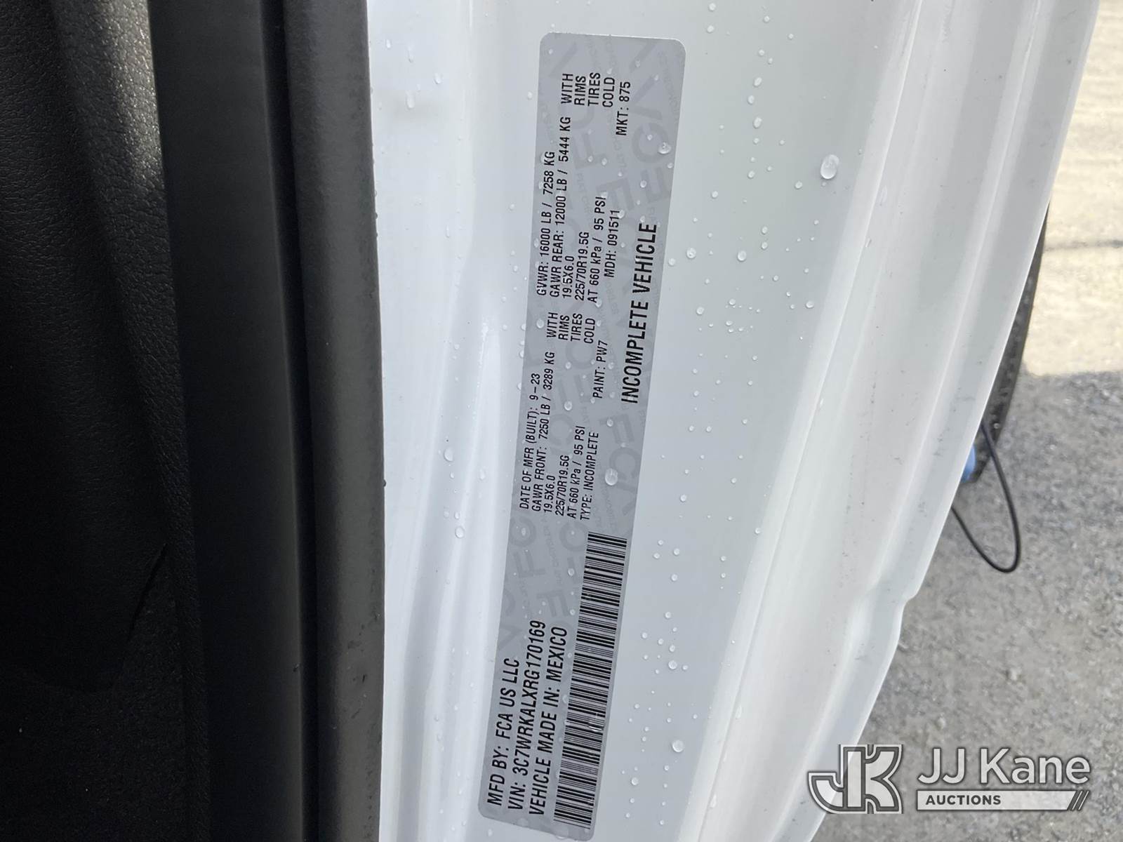 2024 RAM 4500 Cab & Chassis, 6.7L, diesel, Auto, A/C, with 145 in WB, (18 miles) (Runs & Moves) (Jump To Start ) This is a Titled Item NOTE: This unit is being sold AS IS/WHERE IS via Timed Auction and is located in China Grove, NC. Inspection & preview days for this unit are the 2 business days prior to the first day of items closing for this auction, item is located at 820 E NC Hwy 152 China Grove, NC 28023 and hours of operations are 8a-4p. For pre-sale questions, please contact Office Staff @ (704) 674-1113. (Buyer is responsible for removal. Assistance by consignor or JJ Kane Auctioneers is not assured.)