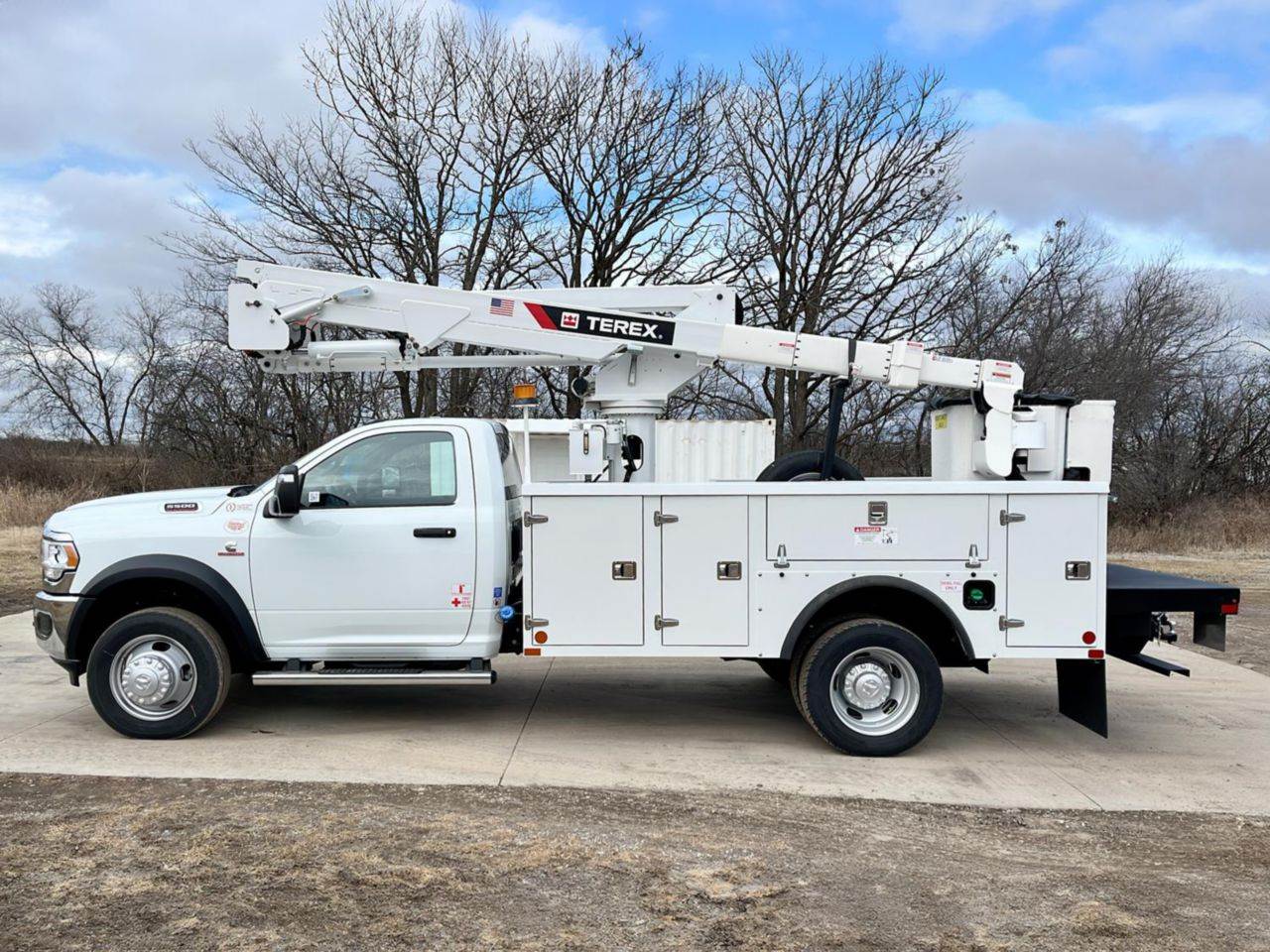 New RAM 5500 4x4 Terex Utilities LT40 Bucket Truck powered by a 360 HP Cummins 6.7L diesel engine with automatic transmission. Equipped with...