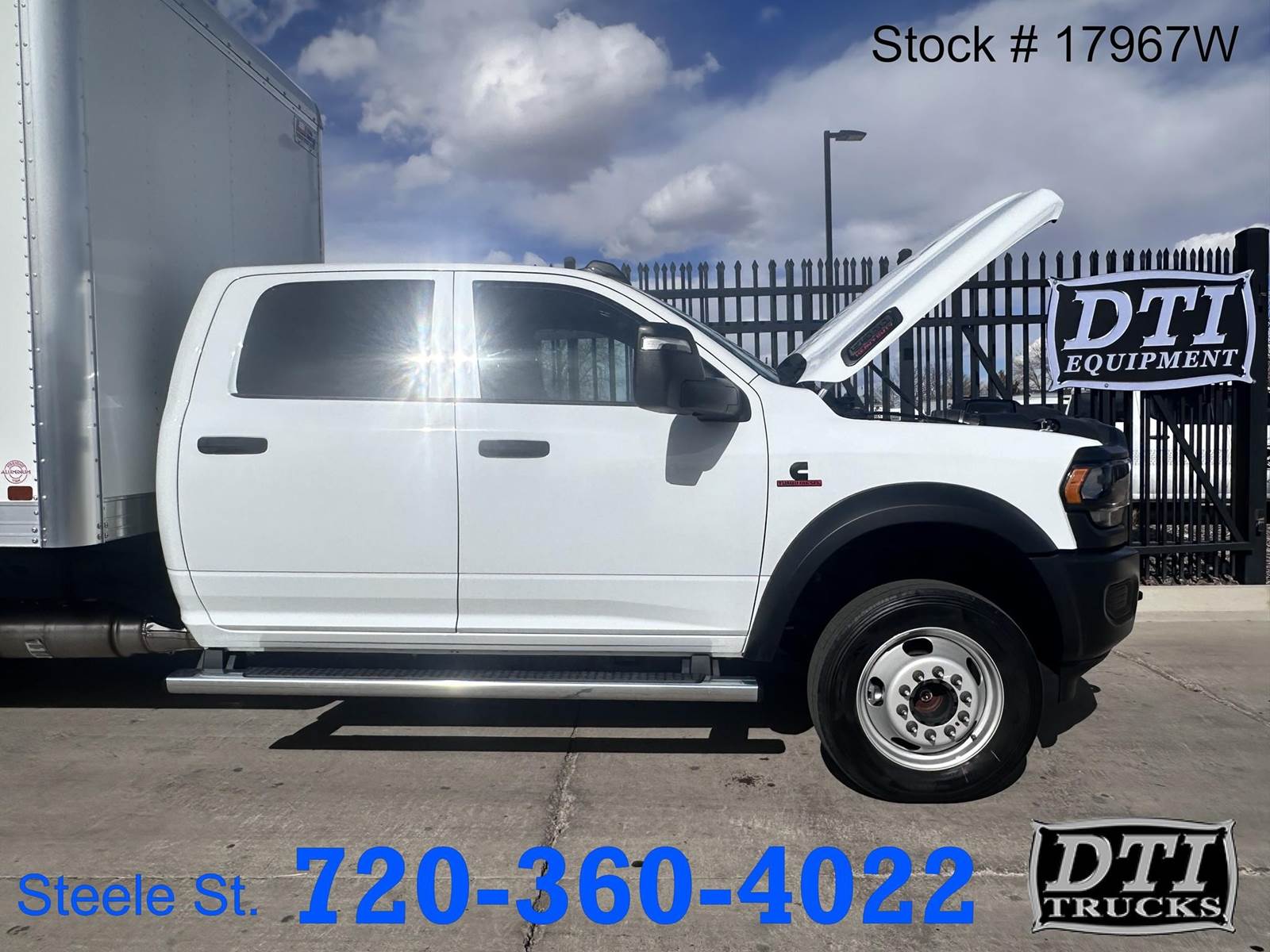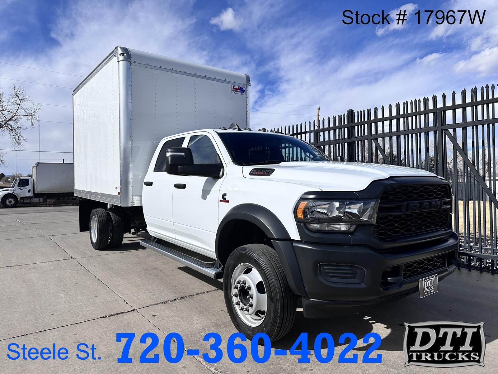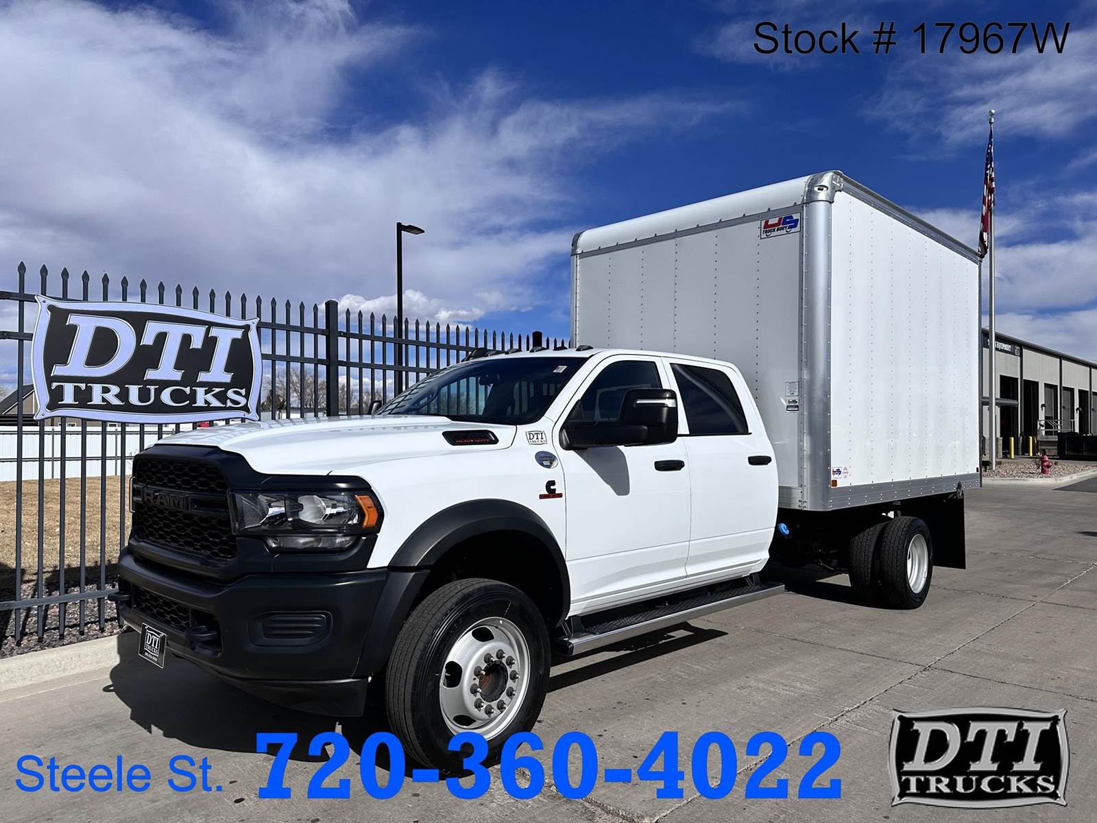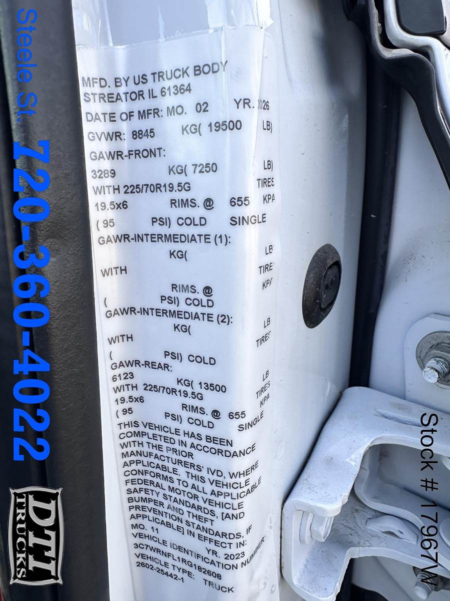 2024 Ram 5500 12 Ft. Box Truck, 6.7L Cummins Engine 360hp, 6 Speed Aisin Automatic Transmission, Manual Transfer Case, 4X4, Auto Hubs, Dually, 19,500 Lbs. GVWR, 7,250 Lb. Front Axle, 13,500 Lb. Rear Axle, 87” Cab To Axle, 198” Wheelbase, Hydraulic Brakes, Spring Suspension, Regular Cab, 6 Passenger Vinyl Seating, Dual Air Bags, Rubber Flooring, AM/FM/Aux Radio, Cruise Control, AC, Factory Exhaust Brake, Tilt Steering, Tow/Haul, Power Windows, Mirrors and Locks, 225/70R/19.5 Tires, Steel Wheels, Running Boards, New 12 Ft US Truck Bodies Box, 96" Wide and 91" Tall Interior Height, Roll Up Rear Door, Hard Wood Flooring, This DOT Inspected Box Truck with ONLY 1730 Miles Is For Sale @ DTI Trucks 8080 Steele St Denver, Colorado. Financing Options Available. Stock# 17967W