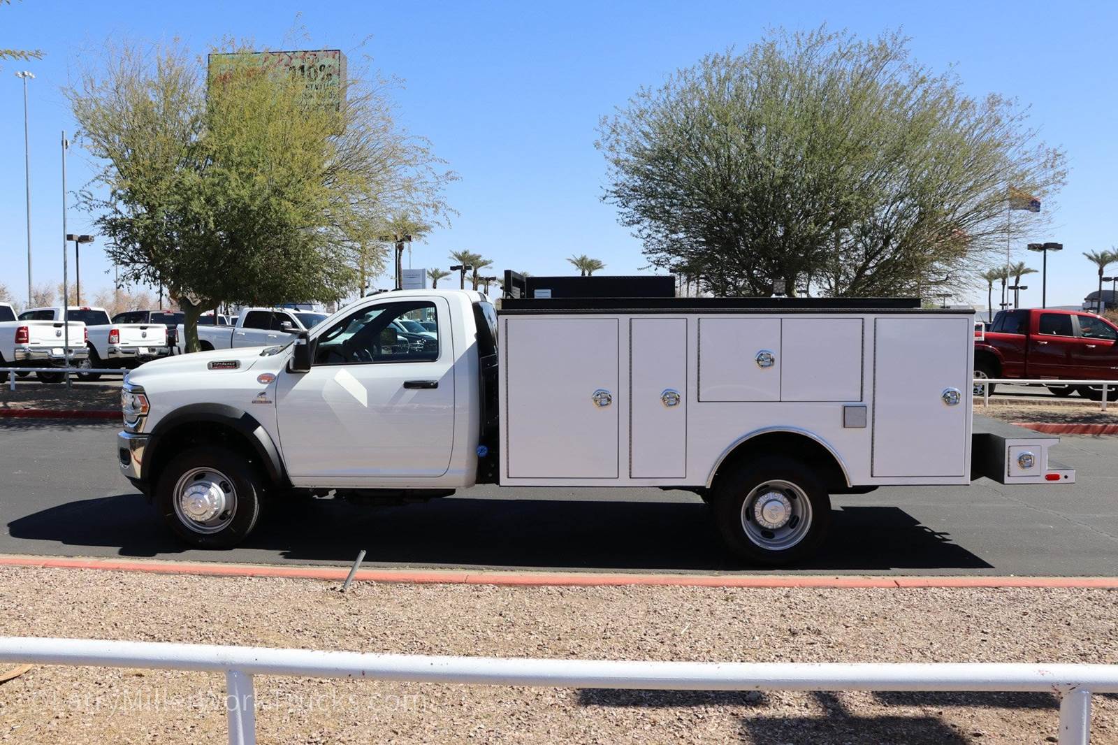 For Sale: New 2024 Ram 5500 Regular Cab 4x4 -- 11' Falcon Welder Mechanics BodyStock#: ADRC240333Available at Larry H. Miller Dodge Ram Avondale10101 W Papago Fwy, Avondale, AZLearn more: LarryMillerDodgeWorkTrucks.comPurpose-Built for Heavy-Duty Welders & MechanicsThe 2024 Ram 5500 Chassis Cab with the 11' Falcon Welder Body is engineered to provide you with unmatched power, capability, and storage. Whether you're welding on the job or carrying essential equipment, this heavy-duty truck is upfitted with all the features you need to maximize productivity and get the job done right. This is a crane truck without the crane. It's even reinforced on the passenger side boxes for up to an 8K crane.Chassis & Powertrain SpecsEngine: 6.7L I6 Cummins Turbo DieselTransmission: Aisin 6-Speed AutomaticGVWR: 19,500 lbs4WD with Electric Shift-On-The-Fly Transfer CaseDual Alternators (440 Amps) for Maximum Power4.44 Axle Ratio19.5 x 6.0 Steel WheelsDual Rear Wheels for Stability11' Falcon Welder Body FeaturesBody Length: 11' | Material: Heavy-Duty SteelFalcon Pro Headache Rack for added protectionMaster Locking System for secure storageWelded-On Step Workbench Bumper for easy accessAdjustable Shelving in raised front curb-side compartmentsLED Work Lights for enhanced visibilityWelder/Compressor Mounting Brackets for convenient equipment setupCompartment Lighting: LEDLighting Location: Compartment areasInterior & Technology -- Tradesman PackageUconnect® 5 with 8.4 Touchscreen DisplayApple CarPlay®, Android Auto?, Bluetooth® AudioSiriusXM® Satellite Radio4G LTE Wi-Fi Hotspot115V Auxiliary Power Outlet to power tools and equipmentFront 1-Touch Down Power WindowsManual Folding & Telescoping Exterior Mirrors with Heating ElementUpgraded Door Trim PanelsMOPAR® Front Rubber Floor MatsPerfect For:Welders & MetalworkersUtility Crews & Service TechniciansConstruction & Heavy-Duty Work ApplicationsFleet Operations & Mobile Mechanic ServicesReady to Work -- On the Lot TodayThis 2024 Ram 5500 with the 11' Falcon Welder Body is ready to tackle your toughest jobs. Visit Larry H. Miller Dodge Ram Avondale for a test drive or request a quote online today!