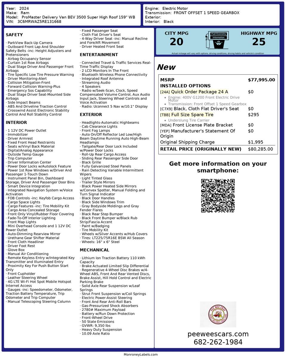 2024 RAM ProMaster EV Delivery Van 3500 Super High Roof 159-in. WB Ext Cargo Van