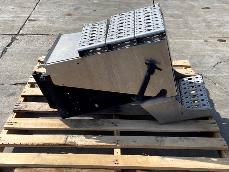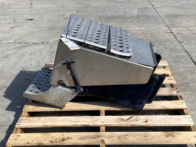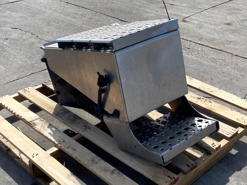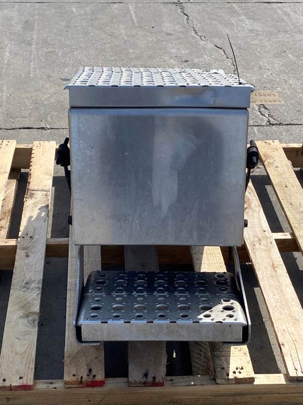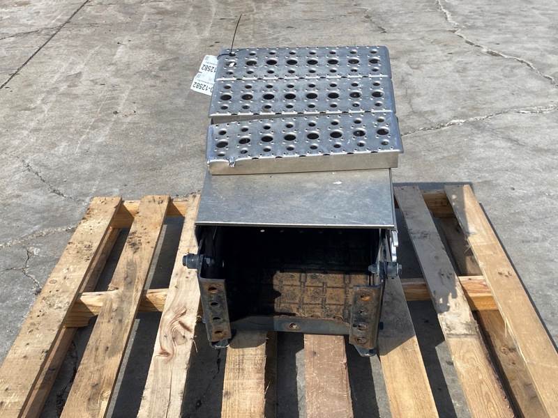 Used Cascadia 126 Battery Box, Side: Driver, Tray Material: Steel, Battery Capacity: 3, Width: 14.00", Height: 11.00", Steps: Yes, Latch/Strap: Strap