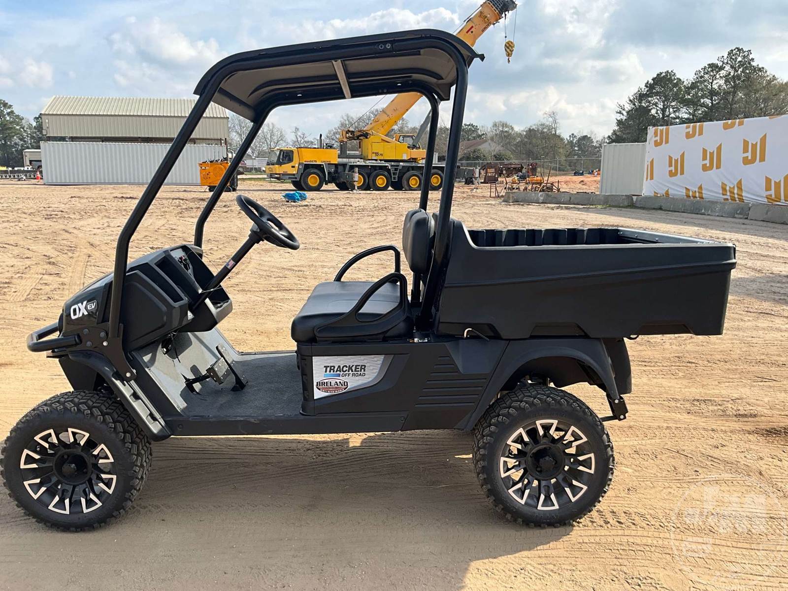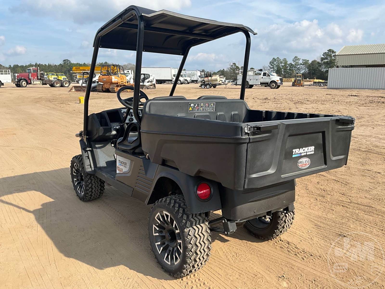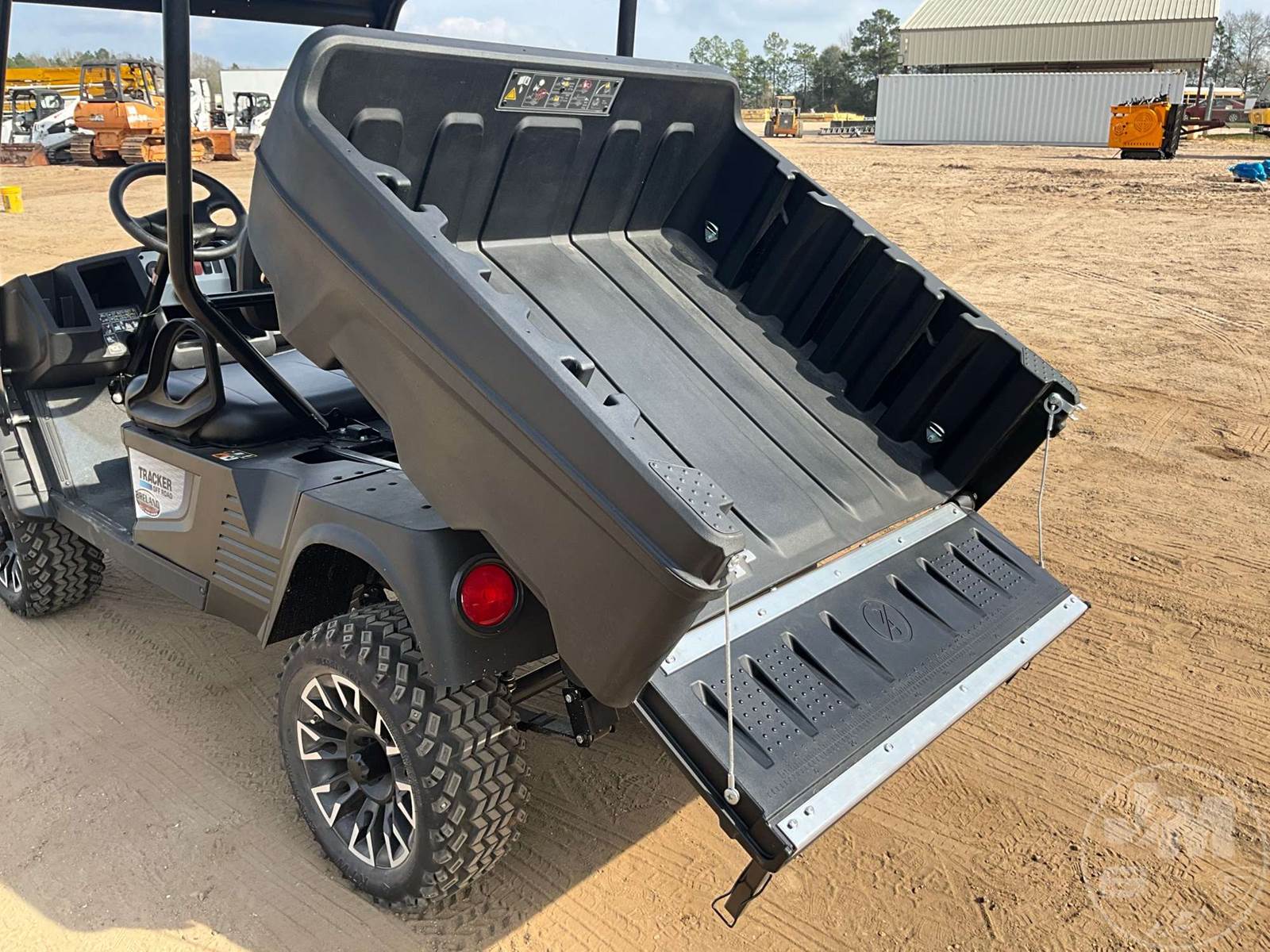 UNUSED GOLF CART, ELECTRIC LITHIUIM ION, BLACK, 2 SEAT, MANUAL DUMP BOX, CANOPY, LIGHTS, ON BOARD CHARGER, TRACKER OFF ROAD GOLF CART, 18 MONTH FULL WARRANTY AND 5 YEAR BATTERY WARRANTY THROUGH DEALER, SAMSUNG BATTERY MANAGEMENT SYSTEM, BED LOAD CAPACITY 500LBS, VEHICLE LOAD CAPACITY 900LBS,TOW CAPACITY 1200LBS, CURB WEIGHT 1009LBS, DUTY RANGE 36-60 MILES, SPEED 16.5 MPH, 900W DELTA Q RC900 RAPID CHARGER, 2 WHEEL MECHANICAL DRUM BRAKES SELF ADJUSTING, LIMITED SLIP WITH HELICAL GEARS, TIRES 23X10-14 DESERT EAGLES-4PLY, WHEEL 14X7 DRIOSS- ALUMINUM- BLACK AND MACHINED, OVERAL LENGTH 121.5", OVERALL WIDTH 55.2", OVERALL HEIGHT 82.8", WHEEL BASE 77.3", REAR WHEEL TRACK 38.8", GROUND CLEARANCE 11.8", WELED STEEL DURA SHIELD POWER COATED FRAME,