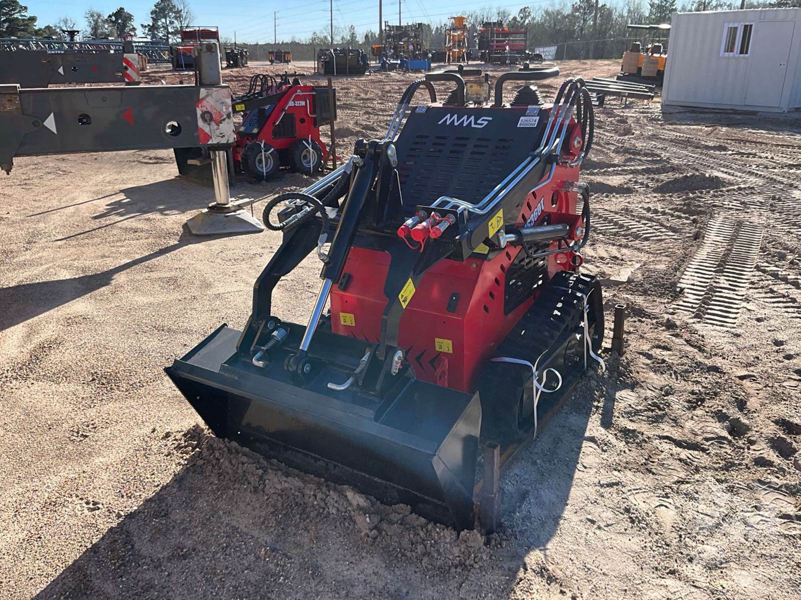 UNUSED STAND ON MULTI TERRAIN LOADER, AUX HYDRAULICS, MANUAL COUPLER, FOOT CONTROLS, SMOOTH BUCKET, 7", RUBBER TRACKS, HOUR METER READS: 0