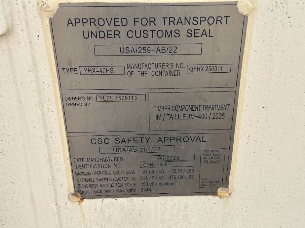 2025 40' CARGO CONTAINER, (4) side doors w/lock box. s/n:QYHX250911