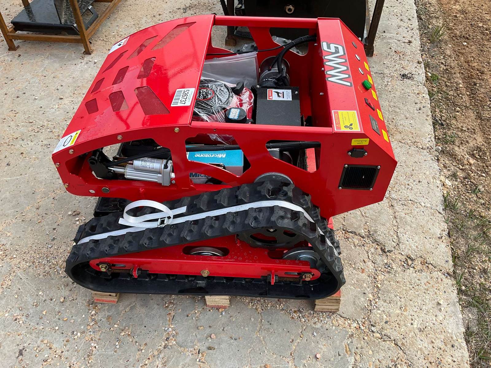 UNUSED MULTI TERRAIN LOADER, RUBBER TRACKS, REMOTE CONTROL LAWN MOWER, HOUR METER READS: 0
