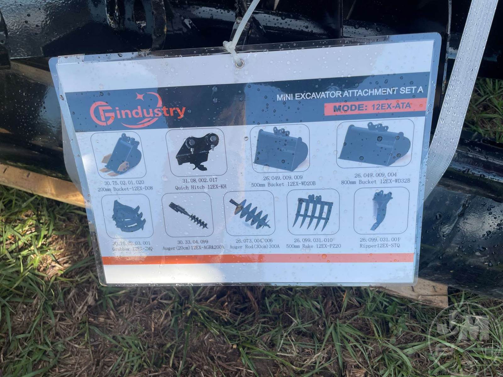 UNUSED EXCAVATOR ATTACHMENTS, 8 IN. BUCKET, 20 IN. BUCKET, 32 IN. BUCKET, QUICK COUPLER, RIPPER, GRAPPLE, RAKE, 8 IN. AUGER, 12 IN. AUGER