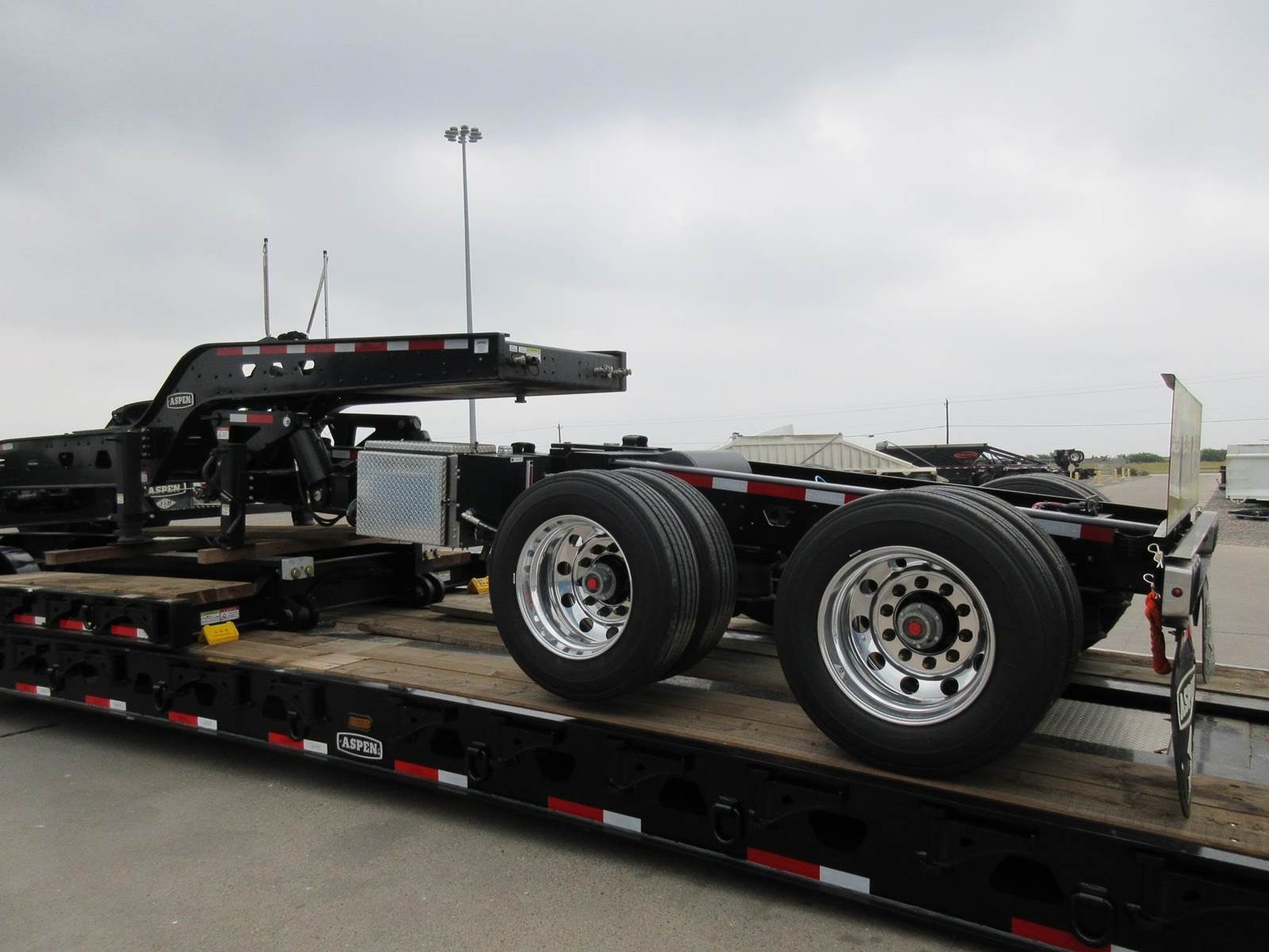 New 2026 Aspen 2 axle 35-ton jeep. 8'6 wide. 50" KP. 88" & 112" truck swing. 186" trailer swing. 2 speed landing gear. All aluminum wheels. 275/70R22.5 tires. Drum brakes. Black