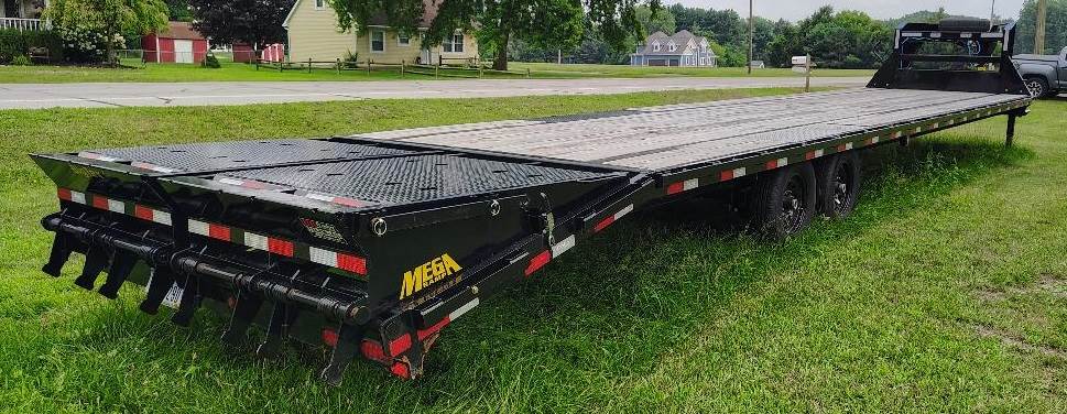 2025 Big Tex 14GN 40D5A-MRBK 35+5 Gooseneck Trailer, Dual Axle, Steel Wheels, 49 ft. Long Overall, Deck 35 ft. Long & 8 ft. 6 inches Wide, Steel Frame, Wood Deck, Spring Loaded Mega Ramps, GVWR 12,000#, Per Lippert Axle 7,000#, LED Lights, Storage Tool Box Located Under Gooseneck, All Chains, 24 ft. Long Straps, & Grease Gun Included, Only Used For 6 Months