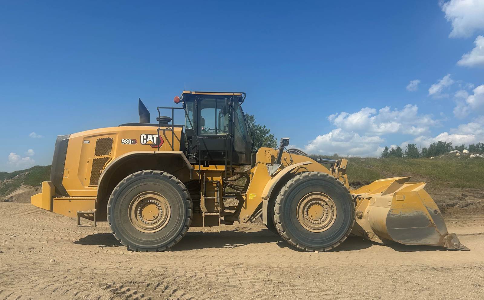 -Enclosed cab, -Partially dissembled for transport, -Includes 16' CAT spade nose tooth bucket