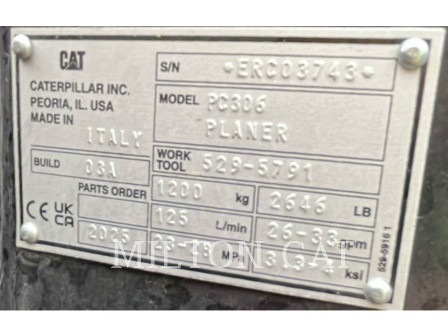54 ALL PURPOSE CONICAL BITS, CATERPILLAR PART NUMBER 529-5791, CATERPILLAR PC306 COLD PLANER, INCLUDES 24" DRUM, INCLUDES 42 GAL WATER TANK...