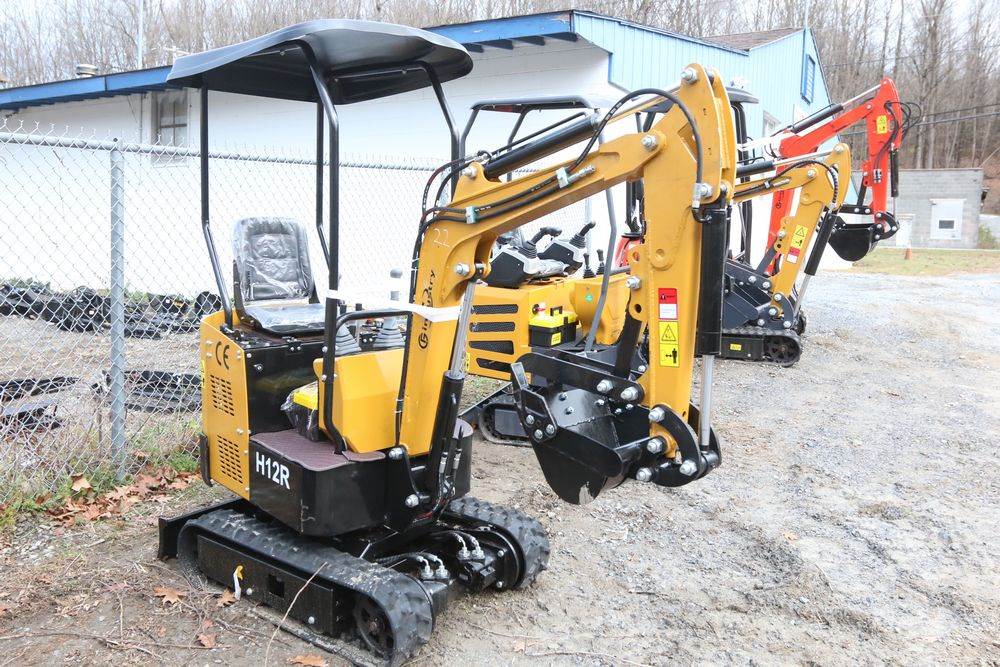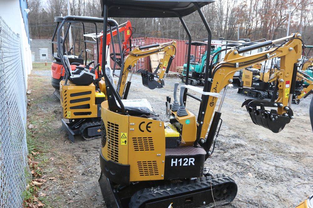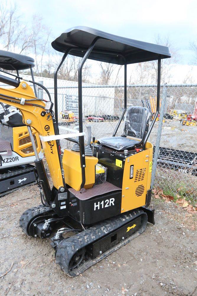 New 2025 CFG Industrial gas powered mini Excavator model H12R with 420cc gasoline engine with EPA, bucket, 4' long tracks, 36.5" wide base, 6" wide tracks, canopy, hydraulic boom & bucket controls, dozer blade. Hours reading less than 1 hour.