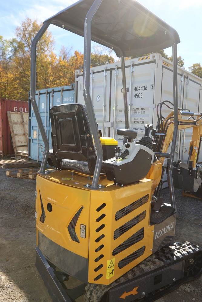 New 2025 CFG Industrial mini excavator model MX12RX, Briggs & Stratton 13.5HP 8.6KW gasoline engine with EPA, bucket, thumb, dozer blade. Hours reading less than one hour.