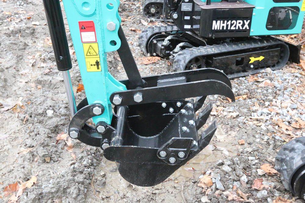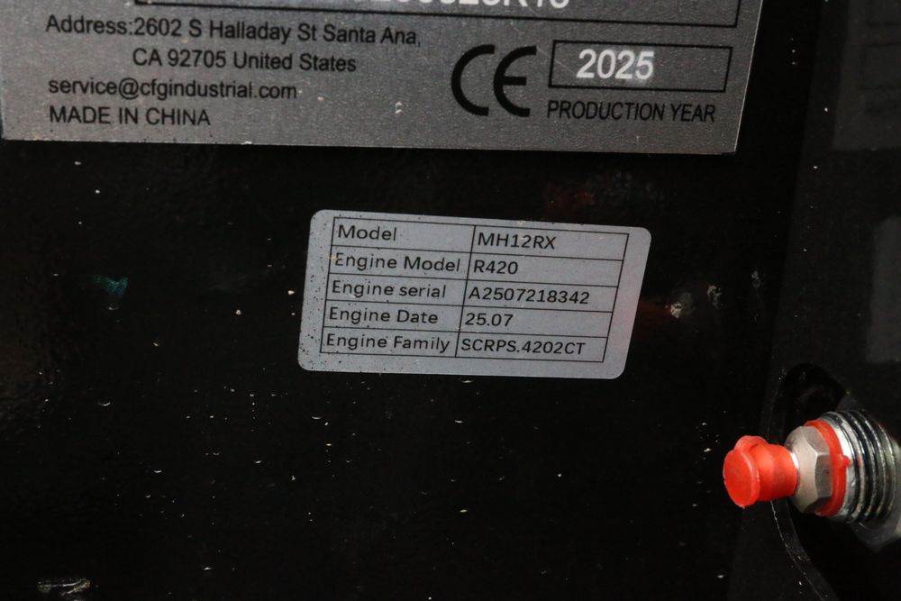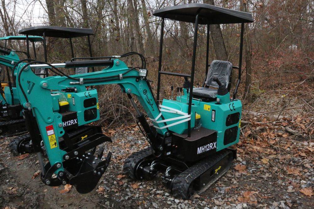 New 2025 CFG Industrial MH12RX mini excavator with bucket, thumb, gas engine. Hours reading less than 1 hour.