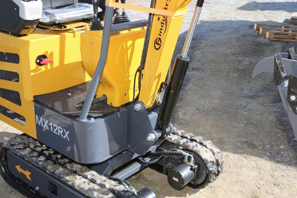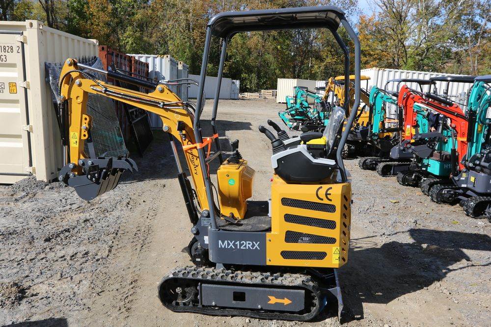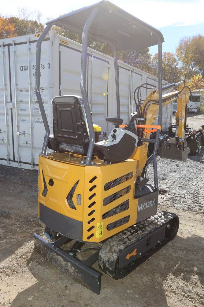 New 2025 CFG Industrial mini excavator model MX12RX, Briggs & Stratton 13.5HP 8.6KW gasoline engine with EPA, bucket, thumb, dozer blade. Hours reading less than one hour.