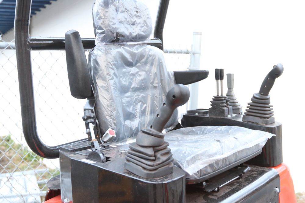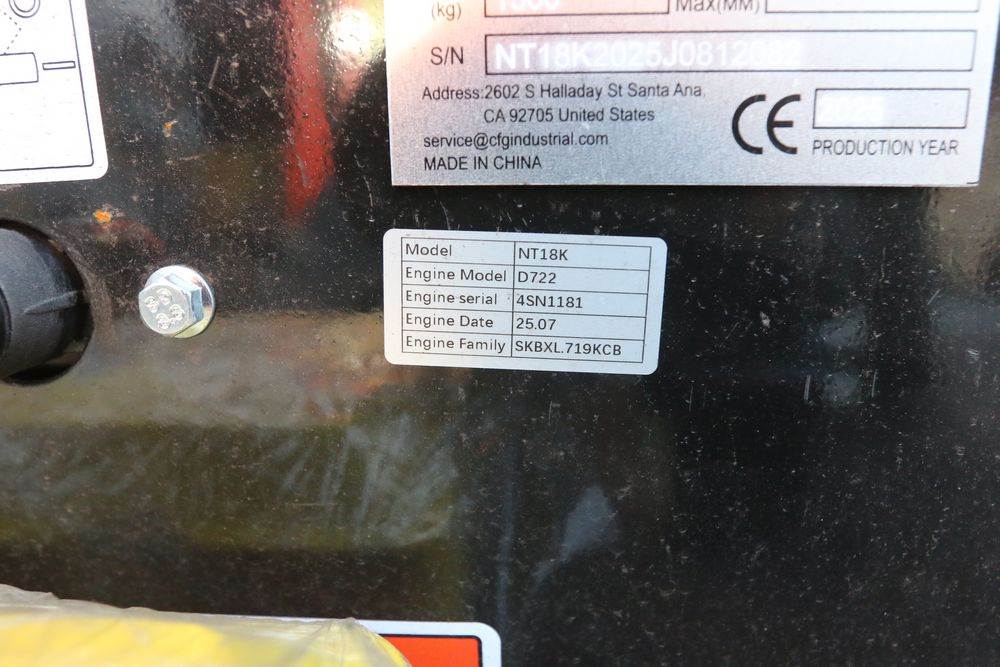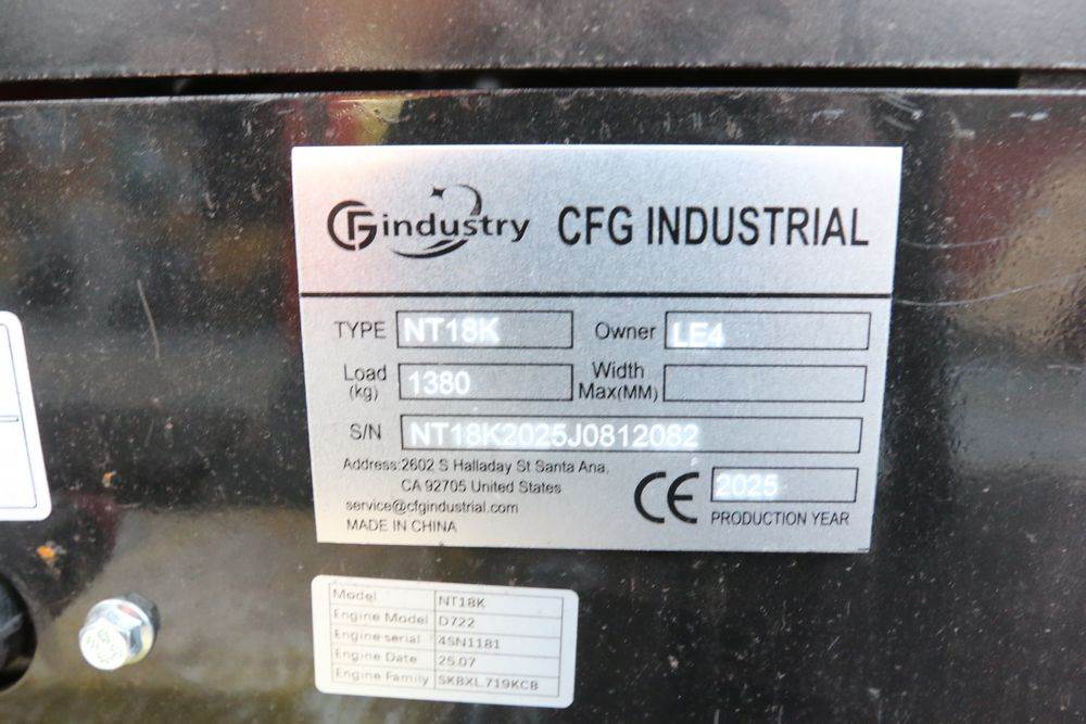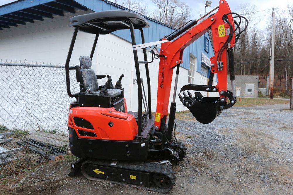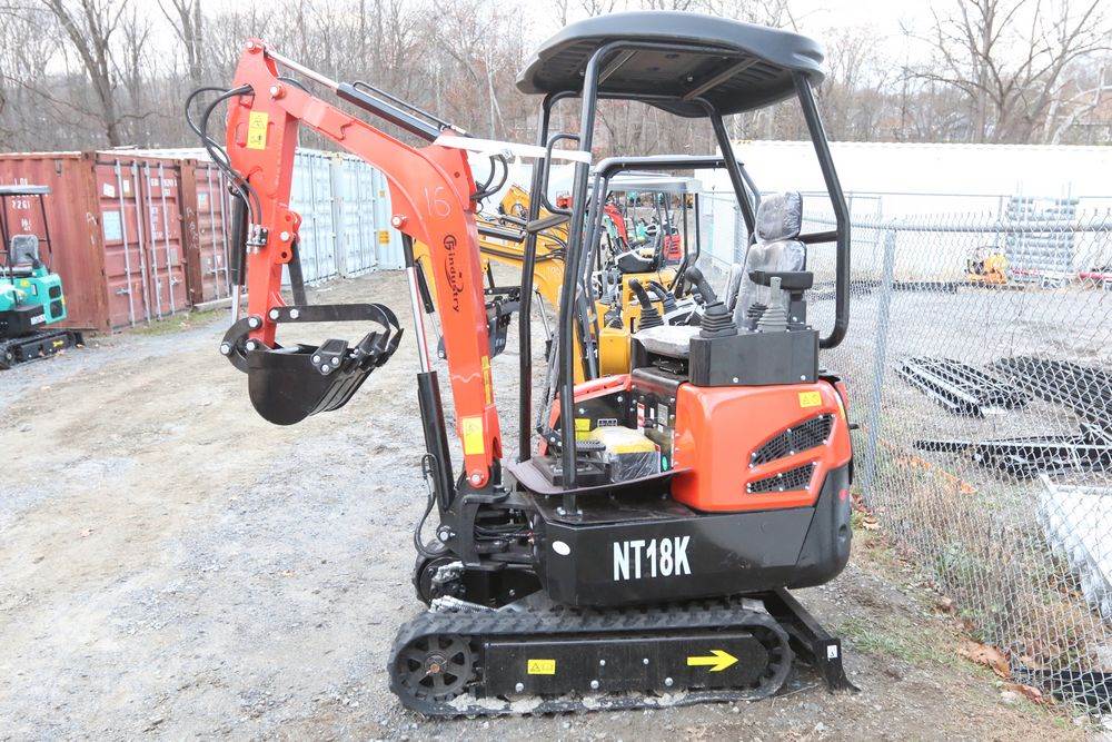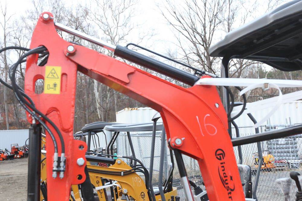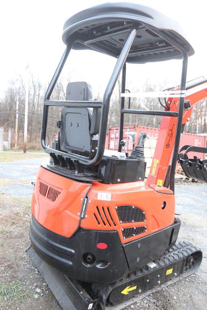 New 2025 CFG Industrial mini Excavator, Kubota 15HP Diesel engine with EPA, model NT18K, with thumb, canopy cover, dozer blade, hand and foot controls. Hours reading less than 1 hour.