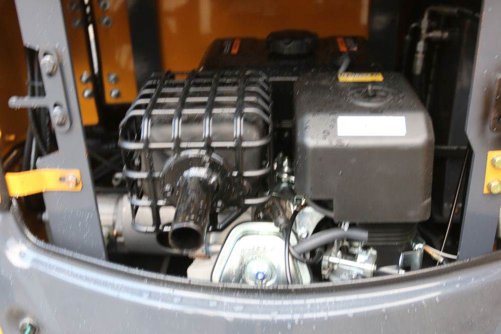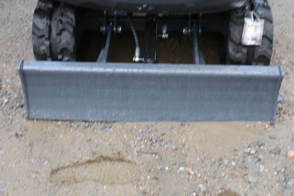 New 2025 CFG mini excavator, model QK18R, RATO, 13.5HP, 8.6KW, with pilot system, hydraulic thumb, rubber tracks, dozer blade, and gasoline engine. Hours reading less than one hour.