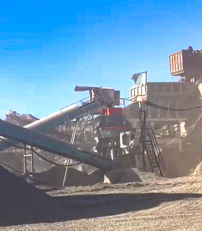 A used stationary 180-300 tons/hour crushing and screening plant suitable for hard and abrasive rock is for sale from FABO.