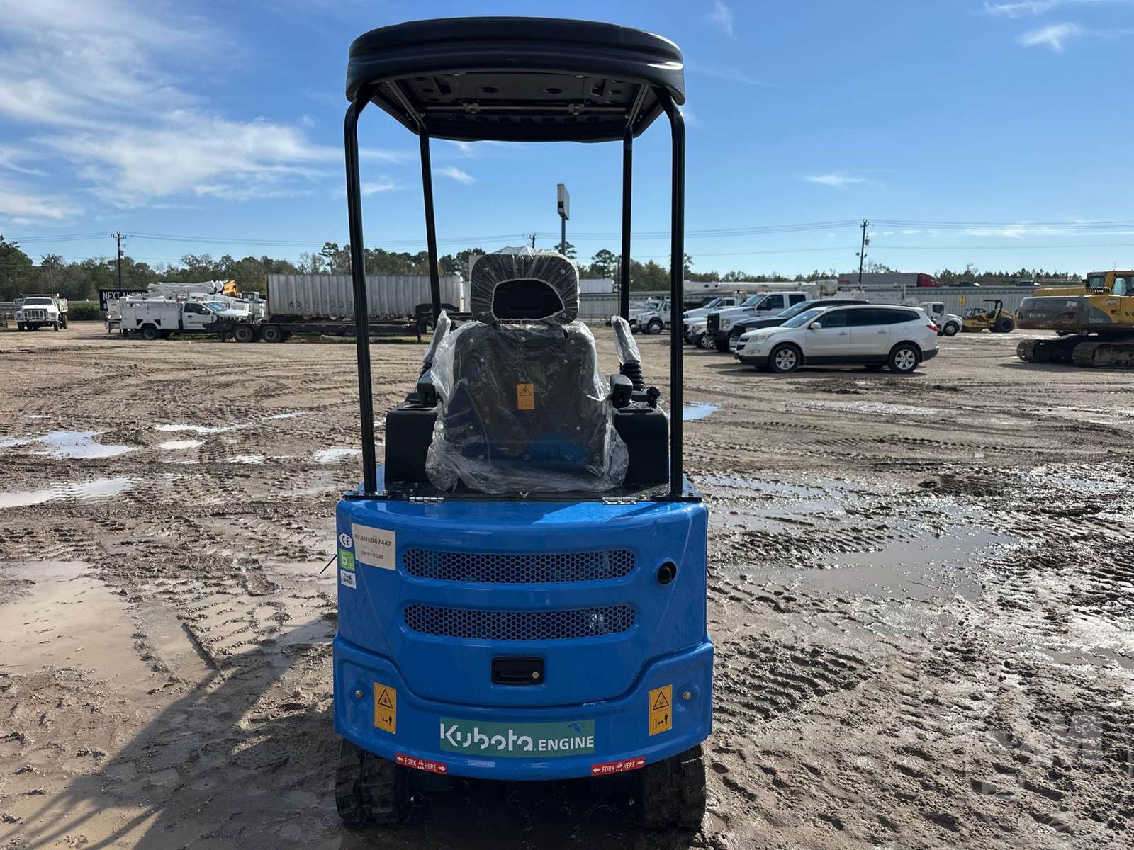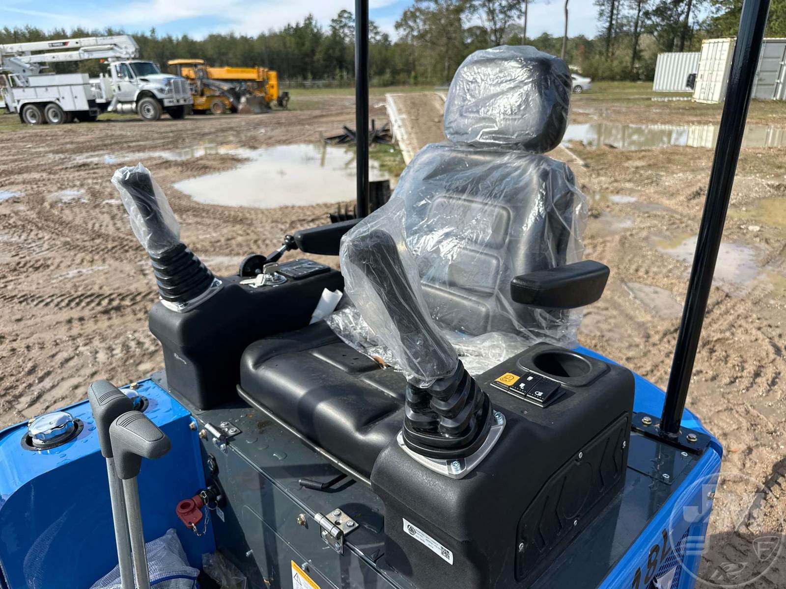 UNUSED MINI EXCAVATOR, CANOPY, 45 IN. STICK, 16 IN. BUCKET, HYDRAULIC THUMB, AUX HYDRAULICS, DOZER, RUBBER TRACKS, HOUR METER READS: 0