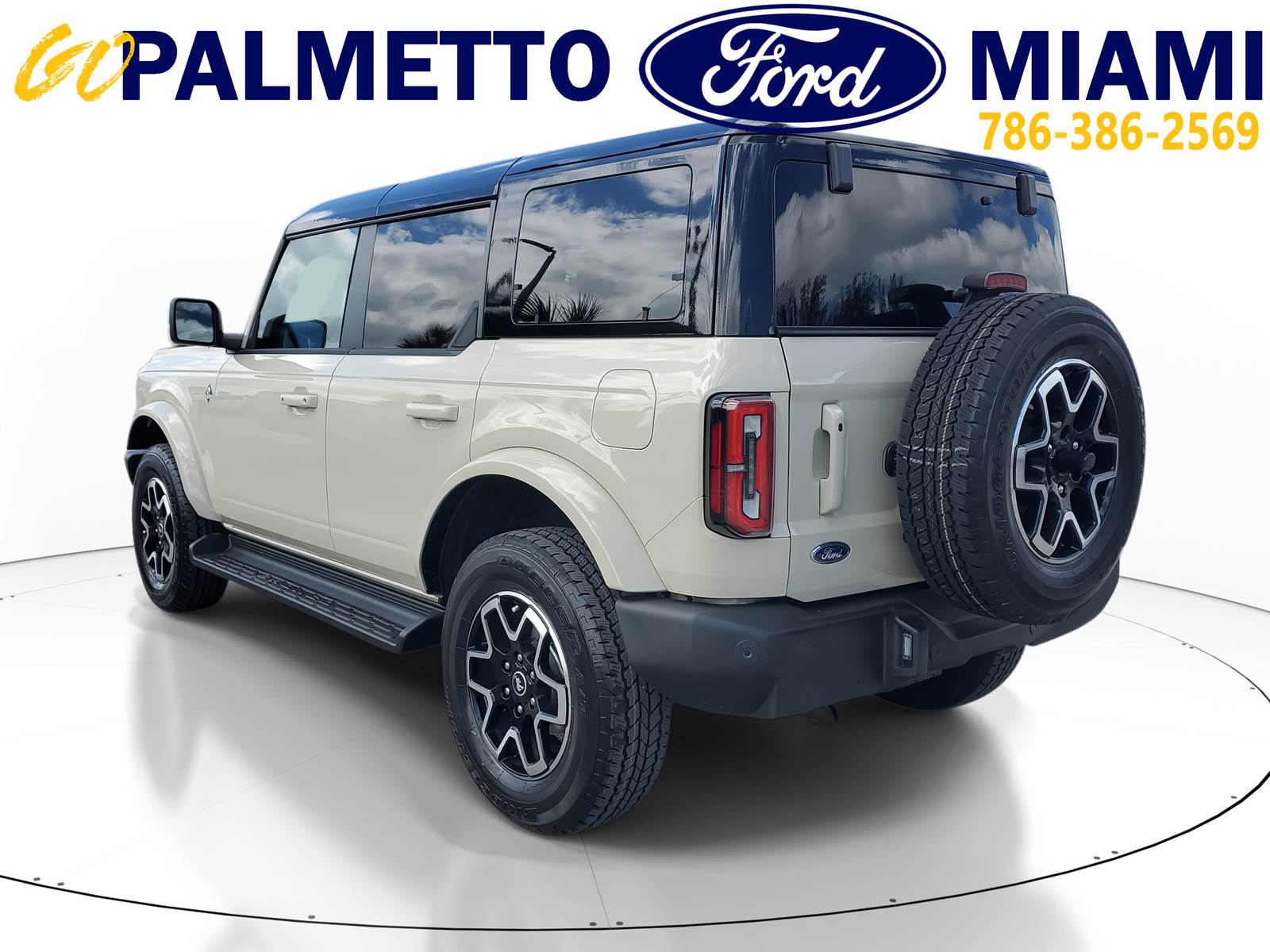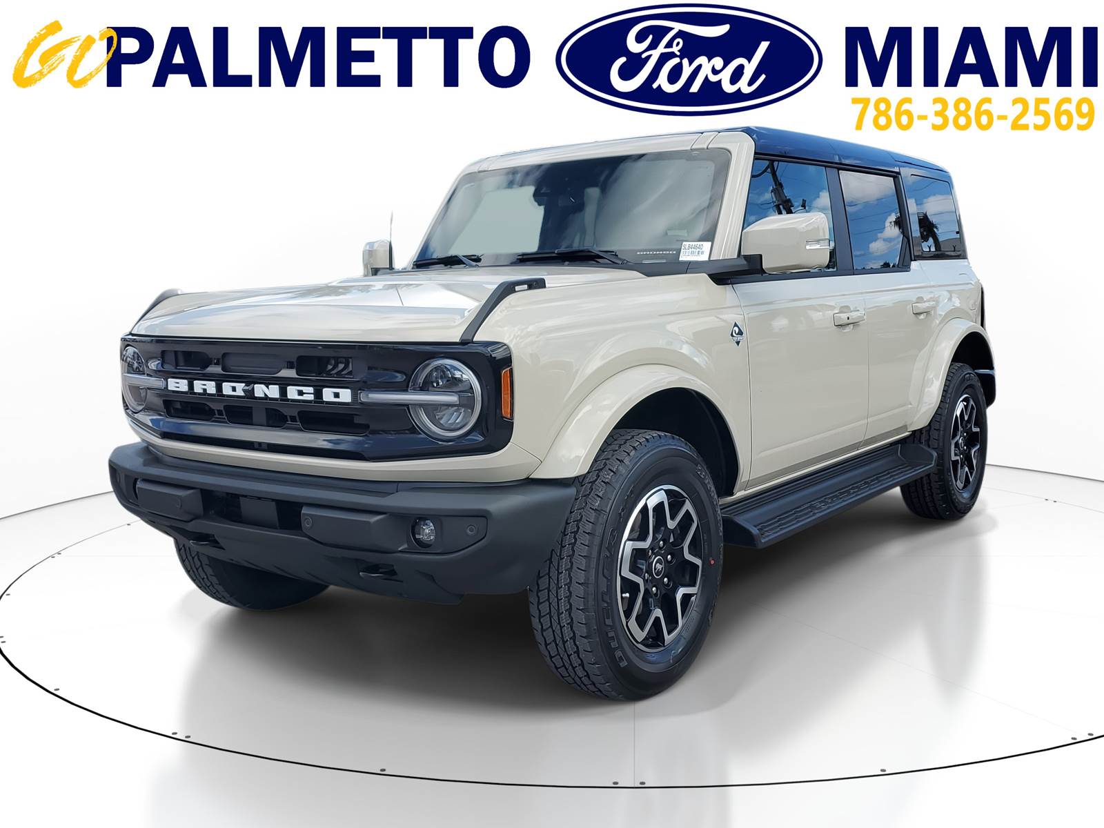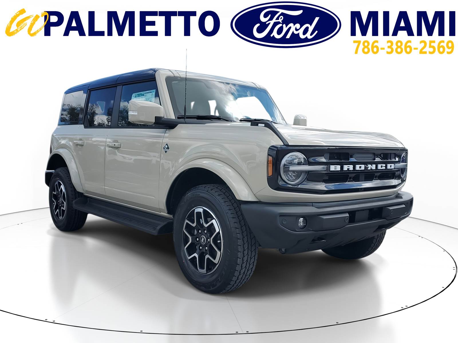 Our excellent 2025 Ford Bronco Outer Banks is for sale at Palmetto Ford of Miami, 7245 NW 36th St, Miami, FL. 33166. It has a sleek Desert Sand exterior, a Vinyl Smoked Truffle interior, a powerful 2.7L Ecoboost engine, and a reliable 10-speed automatic transmission.EXTERIOREASY FUEL CAPLESS FILLERFENDER TIE-DOWN HOOKSLED SIGNATURE LIGHTINGTOW HOOKS-FRT (2)/REAR (1)INTERIOR1TOUCH UP/DOWN DR/PASS WIN60/40 SPLIT FOLD REAR SEATA/C, DUAL ZONE CLIMATE CTLCARPET FLOORING, BOTH ROWSDIGITAL INSTRUMENT CLUSTERLOCKING GLOVE BOXLTHR GEAR KNOB/STR WHEELPOWERPOINTS - 12VPWR 10-WAY DRV/8-WAY PASSSMART CHARGING USB PORTSTILT/TELESCOPE STR COLUMNFUNCTIONAL12LCD CTR STACK TOUCHSCRNAUTO START STOP TECHBRAKES, 4-WHEEL DISC/ABSFORD CO-PILOT360FORDPASS CONNECTFRONT STABILIZER BARHILL START ASSISTMID PACKAGEPUSH-BUTTON STARTSIRIUSXM W/360L- NA AK&HISYNC4TER MGMT W/G.O.A.T. MODESTOOL KIT- DOOR/TOP REMOVALSAFETY/SECURITYADVANCETRAC WITH RSCAIRBAGS-FRNT (DUAL STAGE) & SIDE IMPACT/SAFETY CANOPY SYSTEM (ALL ROWS)BELT-MINDER CHIMECHILD SAFETY REAR DR LOCKSELCTR STABILITY/TRACTN CTLINDIV TIRE PRESS MONIT SYSLATCH CHILD SAFETY SYSTEMPERIMETER ALARMPERSONAL SAFETY SYSTEMIts other features include: Turbocharged, Four Wheel Drive, Power Steering, ABS, 4-Wheel Disc Brakes, Brake Assist, Aluminum Wheels, Tires - Front All-Terrain, Tires - Rear All-Terrain, Conventional Spare Tire, Tire Pressure Monitor, Conventional Spare Tire, Tow Hooks, Tow Hooks, Heated Mirrors, Power Mirror(s), Intermittent Wipers, Variable Speed Intermittent Wipers, Privacy Glass, Running Boards/Side Steps, Rollover Protection Bars, Convertible Soft Top, Power Door Locks, Daytime Running Lights, Automatic Headlights, LED Headlights, Automatic Highbeams, Fog Lamps, AM/FM Stereo, MP3 Capability, Steering Wheel Audio Controls, Satellite Radio, Requires Subscription, MP3 Capability, Bluetooth Connection, Telematics, Auxiliary Audio Input, WiFi Hotspot, Smart Device Integration, Requires Subscription, Bluetooth Connection, Pass-Through Rear Seat, Rear Bench Seat, Adjustable Steering Wheel, Trip Computer, Power Windows, WiFi Hotspot, Leather Steering Wheel, Heated Steering Wheel, Keyless Entry, Power Door Locks, Keyless Entry, Power Door Locks, Keyless Start, Cruise Control, Climate Control, Multi-Zone A/C, A/C, Power Driver Seat, Power Passenger Seat, Leather Seats, Bucket Seats, Heated Front Seat(s), Driver Adjustable Lumbar, Premium Synthetic Seats, Auto-Dimming Rearview Mirror, Driver Vanity Mirror, Passenger Vanity Mirror, Driver Illuminated Vanity Mirror, Passenger Illuminated Visor Mirror, Floor Mats, Remote Engine Start, Smart Device Integration, Requires Subscription, Smart Device Integration, Remote Engine Start, Keyless Start, Navigation System, Power Windows, Power Door Locks, Trip Computer, Security System, Immobilizer, Traction Control, Stability Control, Traction Control, Front Side Air Bag, Telematics, Requires Subscription, Front Collision Mitigation, Blind Spot Monitor, Cross-Traffic Alert, Lane Departure Warning, Lane Keeping Assist, Lane Departure Warning, Driver Monitoring, Rear Parking Aid, Tire Pressure Monitor, Driver Air Bag, Passenger Air Bag, Front Head Air Bag, Rear Head Air Bag, Passenger Air Bag Sensor, Driver Restriction Features, Child Safety Locks, Back-Up CameraThis unit comes with the following warranties:3YR/36,000 BUMPER / BUMPER5YR/60,000 POWERTRAIN5YR/60,000 ROADSIDE ASSIST
