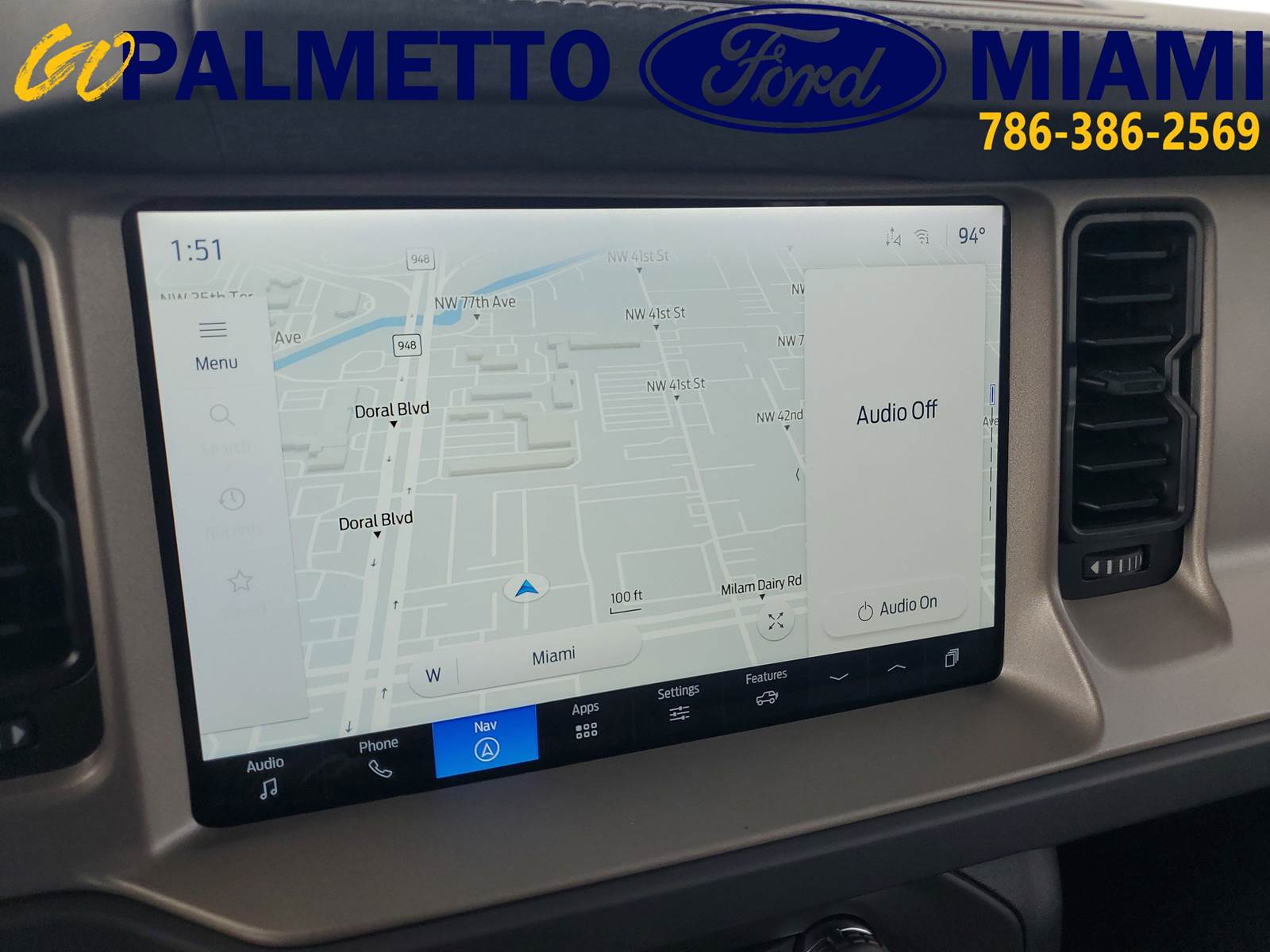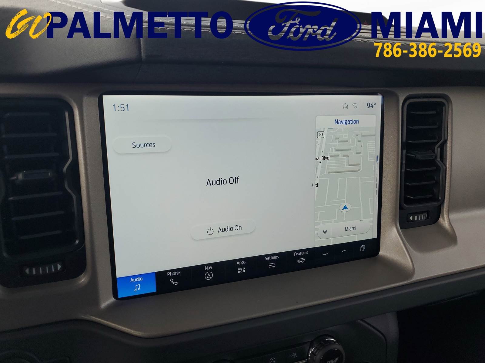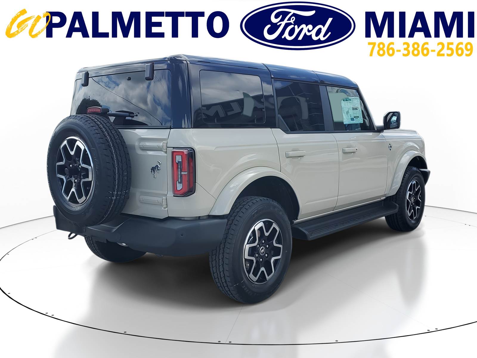 Our excellent 2025 Ford Bronco Outer Banks is for sale at Palmetto Ford of Miami, 7245 NW 36th St, Miami, FL. 33166. It has a sleek Desert Sand exterior, a Vinyl Smoked Truffle interior, a powerful 2.7L Ecoboost engine, and a reliable 10-speed automatic transmission.EXTERIOREASY FUEL CAPLESS FILLERFENDER TIE-DOWN HOOKSLED SIGNATURE LIGHTINGTOW HOOKS-FRT (2)/REAR (1)INTERIOR1TOUCH UP/DOWN DR/PASS WIN60/40 SPLIT FOLD REAR SEATA/C, DUAL ZONE CLIMATE CTLCARPET FLOORING, BOTH ROWSDIGITAL INSTRUMENT CLUSTERLOCKING GLOVE BOXLTHR GEAR KNOB/STR WHEELPOWERPOINTS - 12VPWR 10-WAY DRV/8-WAY PASSSMART CHARGING USB PORTSTILT/TELESCOPE STR COLUMNFUNCTIONAL12LCD CTR STACK TOUCHSCRNAUTO START STOP TECHBRAKES, 4-WHEEL DISC/ABSFORD CO-PILOT360FORDPASS CONNECTFRONT STABILIZER BARHILL START ASSISTMID PACKAGEPUSH-BUTTON STARTSIRIUSXM W/360L- NA AK&HISYNC4TER MGMT W/G.O.A.T. MODESTOOL KIT- DOOR/TOP REMOVALSAFETY/SECURITYADVANCETRAC WITH RSCAIRBAGS-FRNT (DUAL STAGE) & SIDE IMPACT/SAFETY CANOPY SYSTEM (ALL ROWS)BELT-MINDER CHIMECHILD SAFETY REAR DR LOCKSELCTR STABILITY/TRACTN CTLINDIV TIRE PRESS MONIT SYSLATCH CHILD SAFETY SYSTEMPERIMETER ALARMPERSONAL SAFETY SYSTEMIts other features include: Turbocharged, Four Wheel Drive, Power Steering, ABS, 4-Wheel Disc Brakes, Brake Assist, Aluminum Wheels, Tires - Front All-Terrain, Tires - Rear All-Terrain, Conventional Spare Tire, Tire Pressure Monitor, Conventional Spare Tire, Tow Hooks, Tow Hooks, Heated Mirrors, Power Mirror(s), Intermittent Wipers, Variable Speed Intermittent Wipers, Privacy Glass, Running Boards/Side Steps, Rollover Protection Bars, Convertible Soft Top, Power Door Locks, Daytime Running Lights, Automatic Headlights, LED Headlights, Automatic Highbeams, Fog Lamps, AM/FM Stereo, MP3 Capability, Steering Wheel Audio Controls, Satellite Radio, Requires Subscription, MP3 Capability, Bluetooth Connection, Telematics, Auxiliary Audio Input, WiFi Hotspot, Smart Device Integration, Requires Subscription, Bluetooth Connection, Pass-Through Rear Seat, Rear Bench Seat, Adjustable Steering Wheel, Trip Computer, Power Windows, WiFi Hotspot, Leather Steering Wheel, Heated Steering Wheel, Keyless Entry, Power Door Locks, Keyless Entry, Power Door Locks, Keyless Start, Cruise Control, Climate Control, Multi-Zone A/C, A/C, Power Driver Seat, Power Passenger Seat, Leather Seats, Bucket Seats, Heated Front Seat(s), Driver Adjustable Lumbar, Premium Synthetic Seats, Auto-Dimming Rearview Mirror, Driver Vanity Mirror, Passenger Vanity Mirror, Driver Illuminated Vanity Mirror, Passenger Illuminated Visor Mirror, Floor Mats, Remote Engine Start, Smart Device Integration, Requires Subscription, Smart Device Integration, Remote Engine Start, Keyless Start, Navigation System, Power Windows, Power Door Locks, Trip Computer, Security System, Immobilizer, Traction Control, Stability Control, Traction Control, Front Side Air Bag, Telematics, Requires Subscription, Front Collision Mitigation, Blind Spot Monitor, Cross-Traffic Alert, Lane Departure Warning, Lane Keeping Assist, Lane Departure Warning, Driver Monitoring, Rear Parking Aid, Tire Pressure Monitor, Driver Air Bag, Passenger Air Bag, Front Head Air Bag, Rear Head Air Bag, Passenger Air Bag Sensor, Driver Restriction Features, Child Safety Locks, Back-Up CameraThis unit comes with the following warranties:3YR/36,000 BUMPER / BUMPER5YR/60,000 POWERTRAIN5YR/60,000 ROADSIDE ASSIST