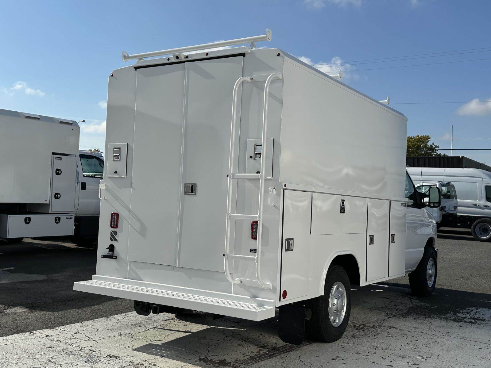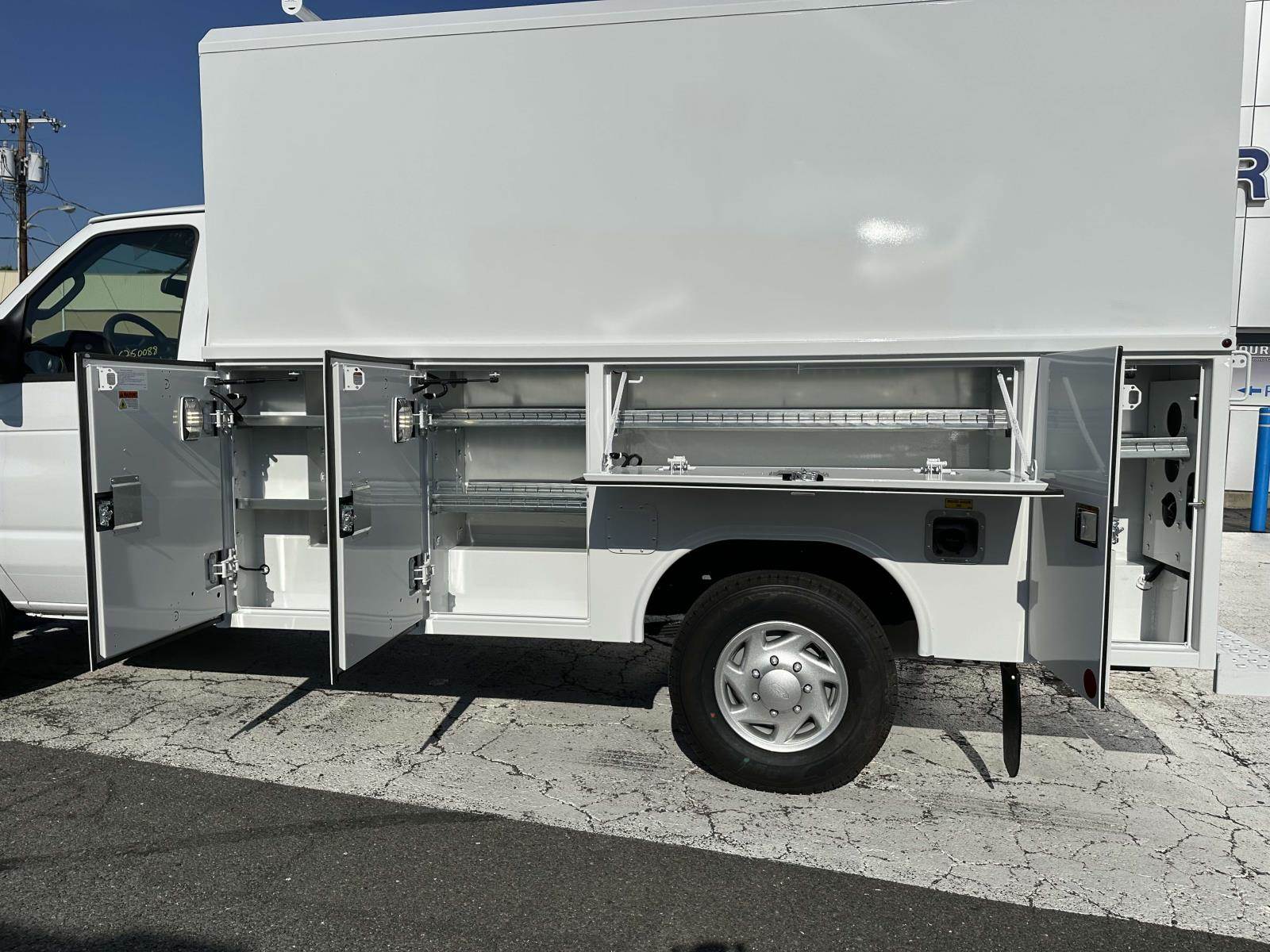 This is a 2025 Ford E-350 Cutaway 4x2 w/ 12' SRW Workport Enclosed Service Body for sale.