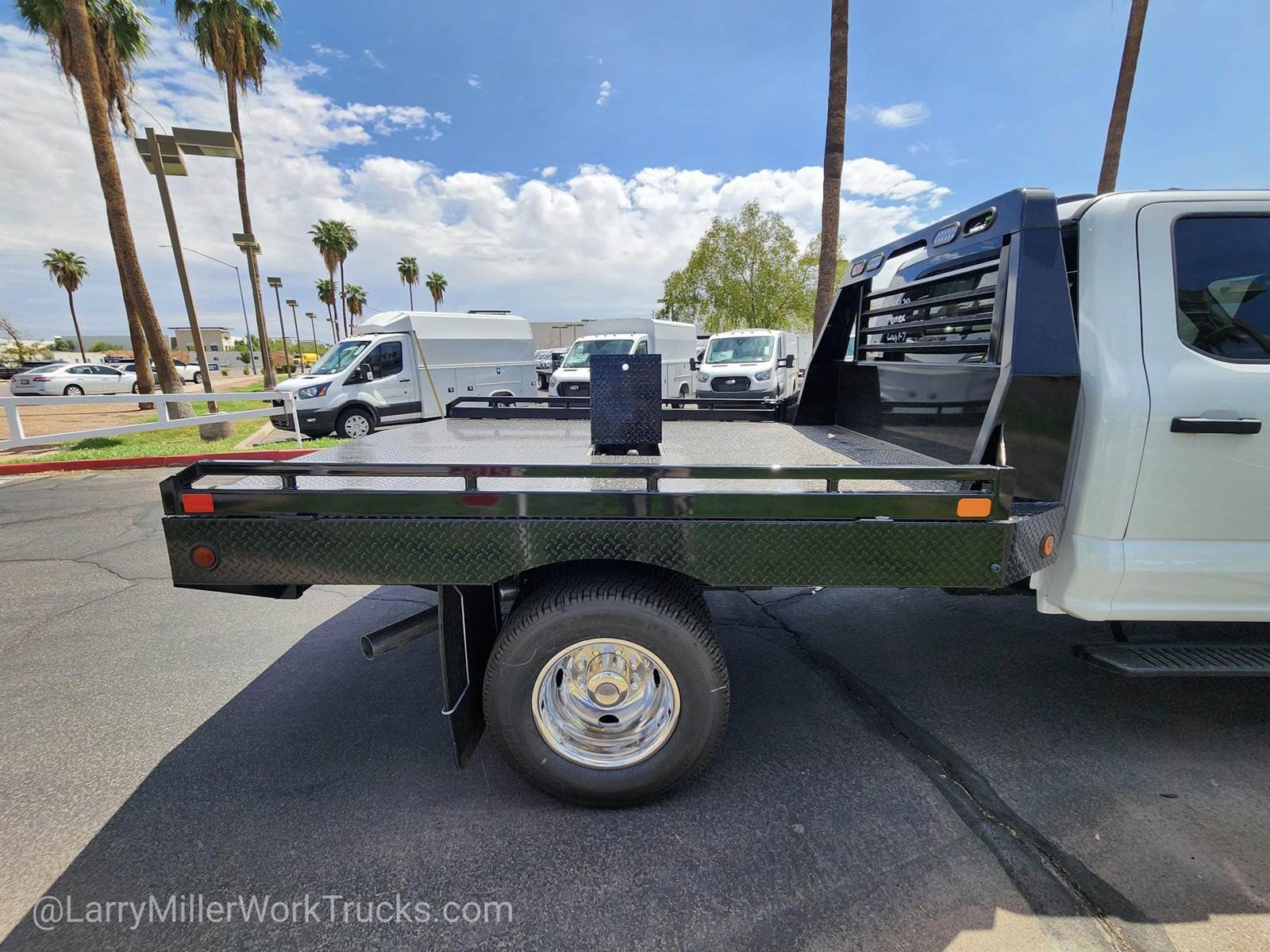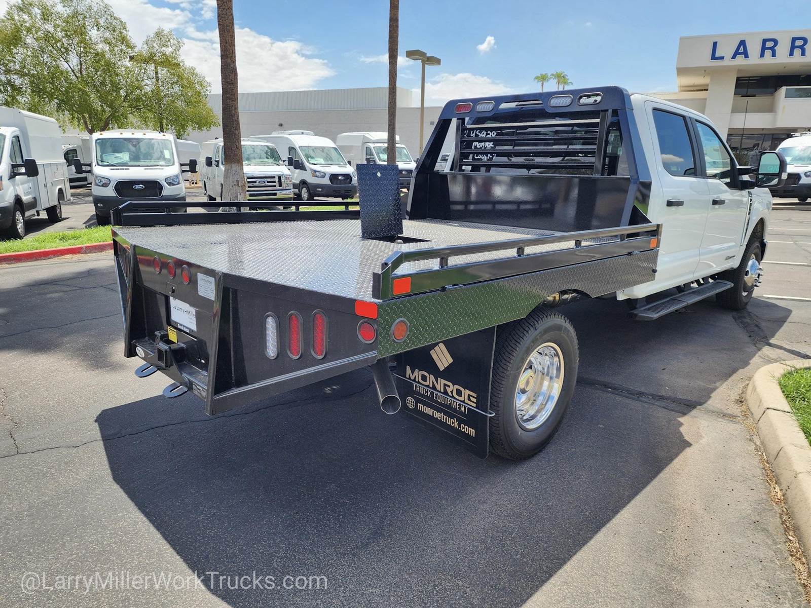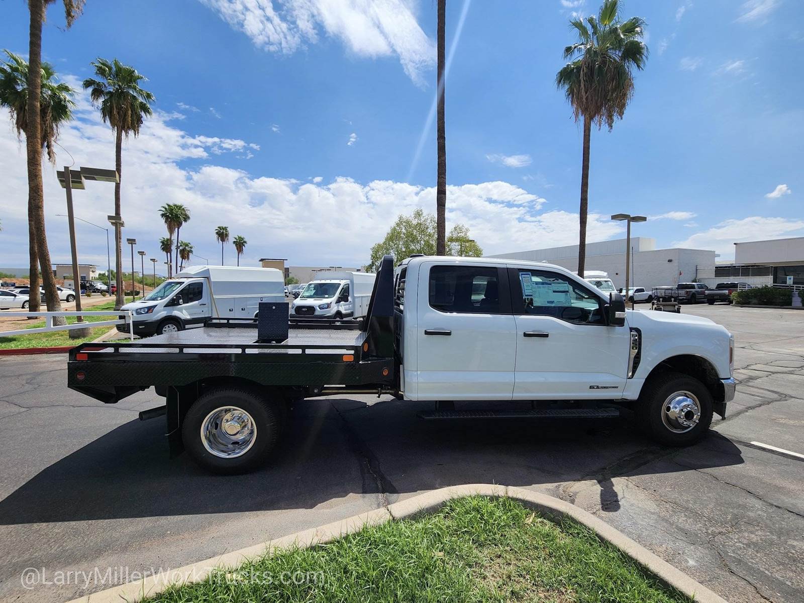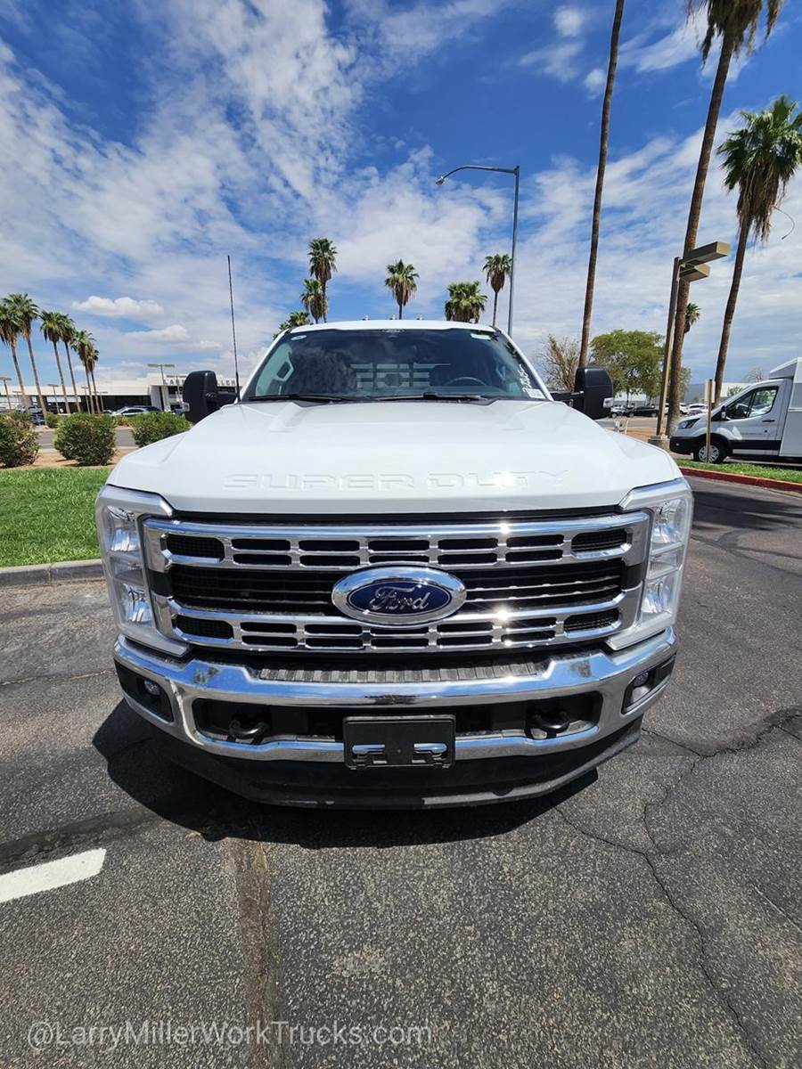 This Ford Super Duty F-350 DRW boasts a Intercooled Turbo Diesel V-8 6.7 L/406 engine powering this Automatic transmission. XL CHROME PACKAGE -inc: Privacy Glass w/Power Sliding Rear Glass, Halogen Fog Lamps, Bright Grille, Remote Start, Chrome Front Bumper, Rear Window Defroster, TRANSMISSION: TORQSHIFT 10-SPEED AUTOMATIC -inc: SelectShift, selectable drive modes: normal, tow/haul, eco, slippery roads and off-road and transmission power take-off provision (STD), TIRES: LT245/75RX17E BSW A/T -inc: Spare may not be the same as road tire.*This Ford Super Duty F-350 DRW Comes Equipped with These Options*SNOW PLOW PREP PACKAGE -inc: pre-selected springs (see order guide supplemental reference for springs/FGAWR of specific vehicle configurations), Note 1: Restrictions apply; see supplemental reference or body builders layout book for details, Note 2: Also allows for the attachment of a winch, Note 3: Highly recommended to add (86M) dual battery on 7.3L gas engine, Adding (67B) 410 amp dual alternators for diesel engine is highly recommended for max power output , REAR VIEW CAMERA & PREP KIT -inc: Pre-installed content includes cab wiring and frame wiring to the rear most cross member, Upfitters kit includes camera w/mounting bracket, 20' jumper wire and camera mounting/aiming instructions, PLATFORM RUNNING BOARDS, OXFORD WHITE, ORDER CODE 640A, MEDIUM DARK SLATE, HD VINYL 40/20/40 SPLIT BENCH SEAT -inc: center armrest, cupholder, storage, 2-way adjustable driver/passenger headrests and driver's side manual lumbar, LIMITED SLIP W/4.10 AXLE RATIO, FRONT LICENSE PLATE BRACKET, ENGINE: 6.7L 4V OHV POWER STROKE V8 TURBO DIESEL B20 -inc: Operator Commanded Regeneration (OCR), Diesel Exhaust Fluid (DEF) tank and manual push-button engine-exhaust braking, 250 Amp Alternator, Dual 68 AH/65 AGM Battery, ENGINE BLOCK HEATER.*Visit Us Today *Stop by Larry H Miller Ford Mesa located at 460 E Auto Center Dr, Mesa, AZ 85204 for a quick visit and a great vehicle!