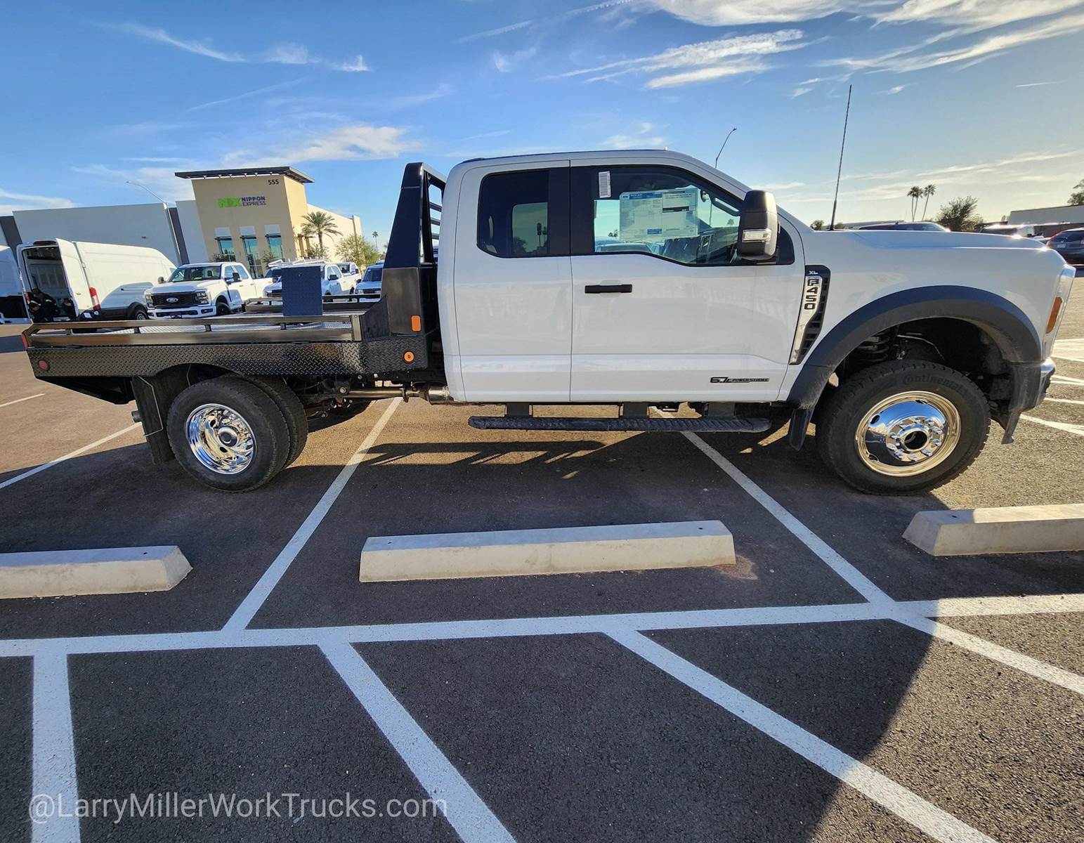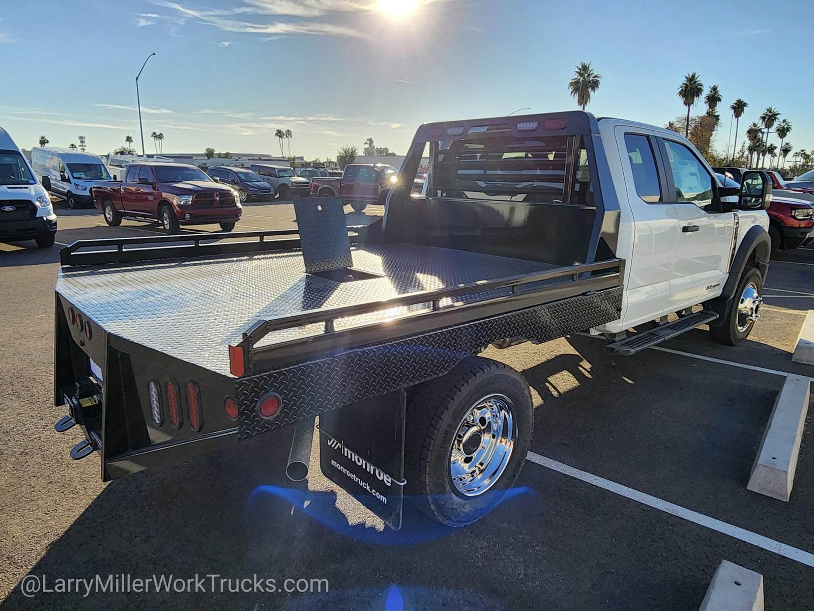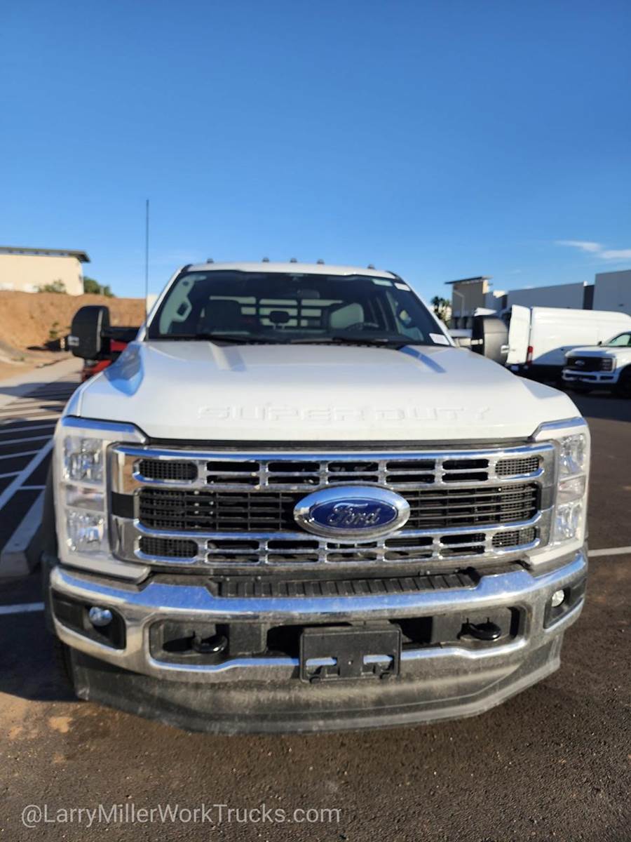This Ford Super Duty F-450 DRW boasts a Intercooled Turbo Diesel V-8 6.7 L/406 engine powering this Automatic transmission. XL CHROME PACKAGE -inc: Privacy Glass w/Power Sliding Rear Glass, Halogen Fog Lamps, Bright Grille, Remote Start, Chrome Front Bumper, Rear Window Defroster, TRANSMISSION: TORQSHIFT 10-SPEED AUTOMATIC -inc: SelectShift, selectable drive modes: normal, tow/haul, eco, slippery roads and off-road and transmission power take-off provision (STD), TIRES: 225/70RX19.5G BSW TRACTION (TGK) -inc: 4 traction tires on the rear and 2 traction tires on the front, Not recommended for over the road applications; could incur irregular front tire wear and/or NVH.*This Ford Super Duty F-450 DRW Features the Following Options*SNOW PLOW PREP PACKAGE -inc: pre-selected springs (see order guide supplemental reference for springs/FGAWR of specific vehicle configurations), Note 1: Restrictions apply; see supplemental reference or body builders layout book for details, Note 2: Also allows for the attachment of a winch, Note 3: Highly recommended to add (86M) dual battery on 7.3L gas engine, Adding (67B) 410 amp dual alternators for diesel engine is highly recommended for max power output, GVWR: 16,000 LB PAYLOAD PACKAGE , REAR VIEW CAMERA & PREP KIT -inc: Pre-installed content includes cab wiring and frame wiring to the rear most cross member, Upfitters kit includes camera w/mounting bracket, 20' jumper wire and camera mounting/aiming instructions, PLATFORM RUNNING BOARDS, OXFORD WHITE, ORDER CODE 650A, MEDIUM DARK SLATE, HD VINYL 40/20/40 SPLIT BENCH SEAT -inc: center armrest, cupholder, storage, 2-way adjustable driver/passenger headrests and driver's side manual lumbar, LIMITED SLIP W/4.10 AXLE RATIO, ENGINE: 6.7L 4V OHV POWER STROKE V8 TURBO DIESEL B20 -inc: Operator Commanded Regeneration (OCR), Diesel Exhaust Fluid (DEF) tank and manual push-button engine-exhaust braking, 4.10 Axle Ratio, 250 Amp Alternator, Dual 68 AH/65 AGM Battery, ENGINE BLOCK HEATER.*Visit Us Today *Stop by Larry H Miller Ford Mesa located at 460 E Auto Center Dr, Mesa, AZ 85204 for a quick visit and a great vehicle!