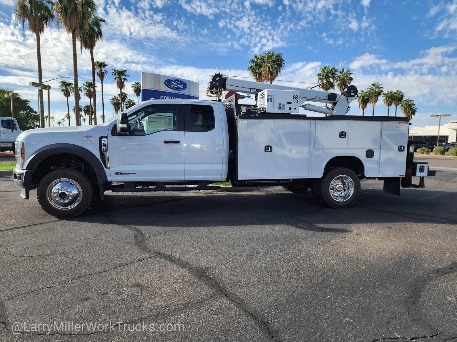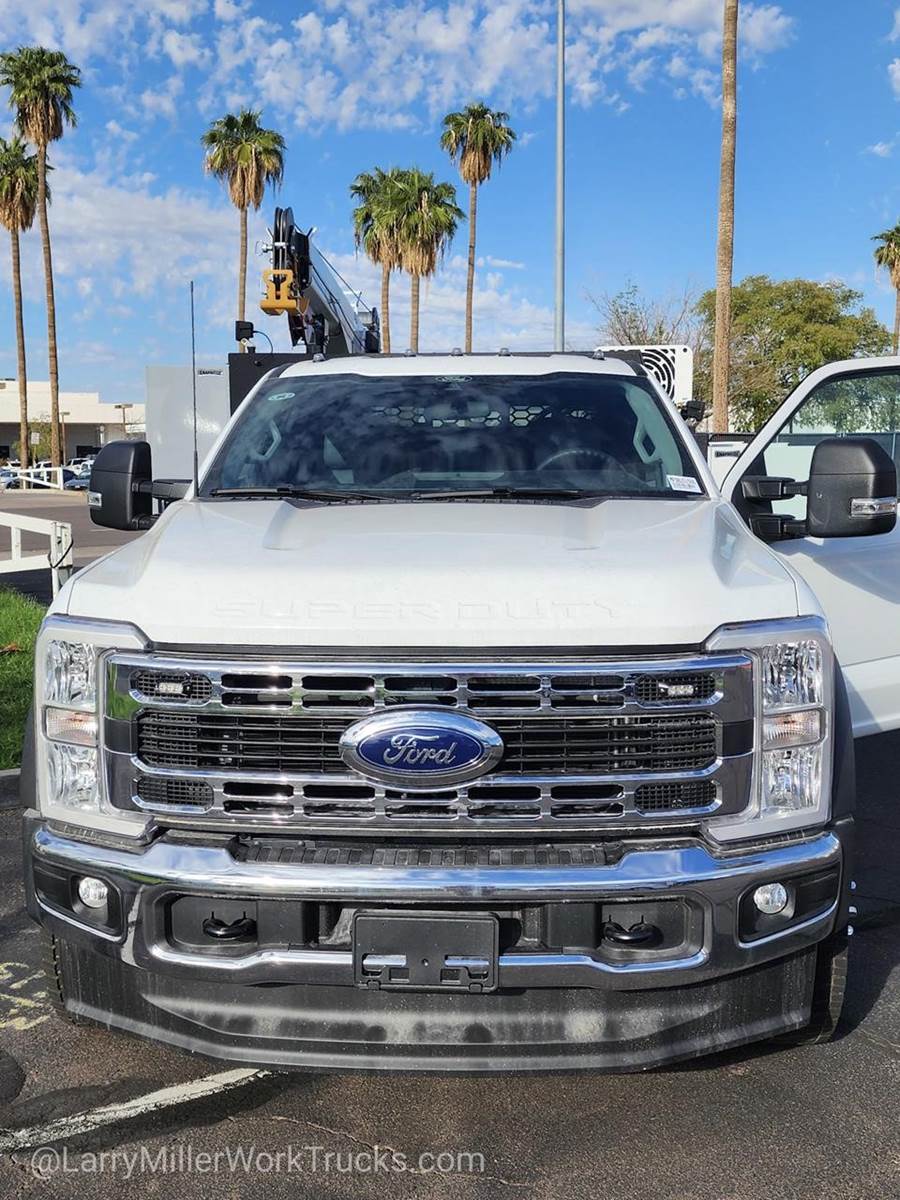 This Ford Super Duty F-550 DRW delivers a Intercooled Turbo Diesel V-8 6.7 L/406 engine powering this Automatic transmission. XL CHROME PACKAGE -inc: Privacy Glass w/Power Sliding Rear Glass, Halogen Fog Lamps, Bright Grille, Remote Start, Chrome Front Bumper, Rear Window Defroster, TRANSMISSION: TORQSHIFT 10-SPEED AUTOMATIC -inc: SelectShift, selectable drive modes: normal, tow/haul, eco, slippery roads and off-road and transmission power take-off provision (STD), TRAILER BRAKE CONTROLLER.*This Ford Super Duty F-550 DRW Comes Equipped with These Options*SNOW PLOW PREP PACKAGE -inc: pre-selected springs (see order guide supplemental reference for springs/FGAWR of specific vehicle configurations), Note 1: Restrictions apply; see supplemental reference or body builders layout book for details, Note 2: Also allows for the attachment of a winch, Note 3: Highly recommended to add (86M) dual battery on 7.3L gas engine, Adding (67B) 410 amp dual alternators for diesel engine is highly recommended for max power output, HIGH CAPACITY TRAILER TOW PACKAGE -inc: trailer brake wiring kit, Increases GCW from 32,500 lbs, to 40,000 lbs, Note: Salesperson's Portfolio or Trailer Towing Guide should be consulted for specific trailer towing or camper limits and corresponding required equipment, axle ratios and model availability, See Supplemental Reference for vehicle height consideration, GVWR: 19,550 LB PAYLOAD PLUS UPGRADE PACKAGE 2 -inc: upgraded frame, upgraded rear-axle and low deflection/high capacity rear springs, Increases max RGAWR to 14,706 lbs, Note: See Order Guide Supplemental Reference for further details on GVWR , SPARE TIRE & WHEEL DELETE, REAR VIEW CAMERA & PREP KIT -inc: Pre-installed content includes cab wiring and frame wiring to the rear most cross member, Upfitters kit includes camera w/mounting bracket, 20' jumper wire and camera mounting/aiming instructions, RAPID-HEAT SUPPLEMENTAL CAB HEATER -inc: 410 Amp Dual Alternators, 250 Amp + 160 Amp, PLATFORM RUNNING BOARDS, OXFORD WHITE, ORDER CODE 660A, MEDIUM DARK SLATE, HD VINYL 40/20/40 SPLIT BENCH SEAT -inc: center armrest, cupholder, storage, 2-way adjustable driver/passenger headrests and driver's side manual lumbar.*Visit Us Today *Come in for a quick visit at Larry H Miller Ford Mesa, 460 E Auto Center Dr, Mesa, AZ 85204 to claim your Ford Super Duty F-550 DRW!