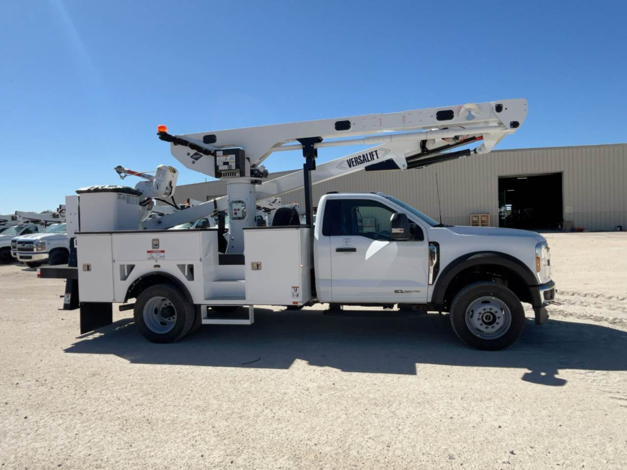 Owning this Ford F600 with the Versalift VST-52-MHI bucket lift gives utilities, telecoms, and contractors a powerful mid-range aerial solution with 56 feet of working height and over 30 feet of side reach, making it ideal for line work, maintenance, and installations. Built with a hydraulic dual-arm jib, 1,000-lb winch, and ANSI/SIA A92.2 compliance, it delivers both reach and safety. The line body offers organized storage with shelves, dividers, and hotstick racks, while outrigger stability and full hydraulic controls ensure safe, efficient operation. With a 400-lb platform capacity, continuous rotation, and modern cab features like SYNC 4 and rear camera, this truck is a reliable, turnkey work platform designed to maximize crew productivity and minimize downtime.