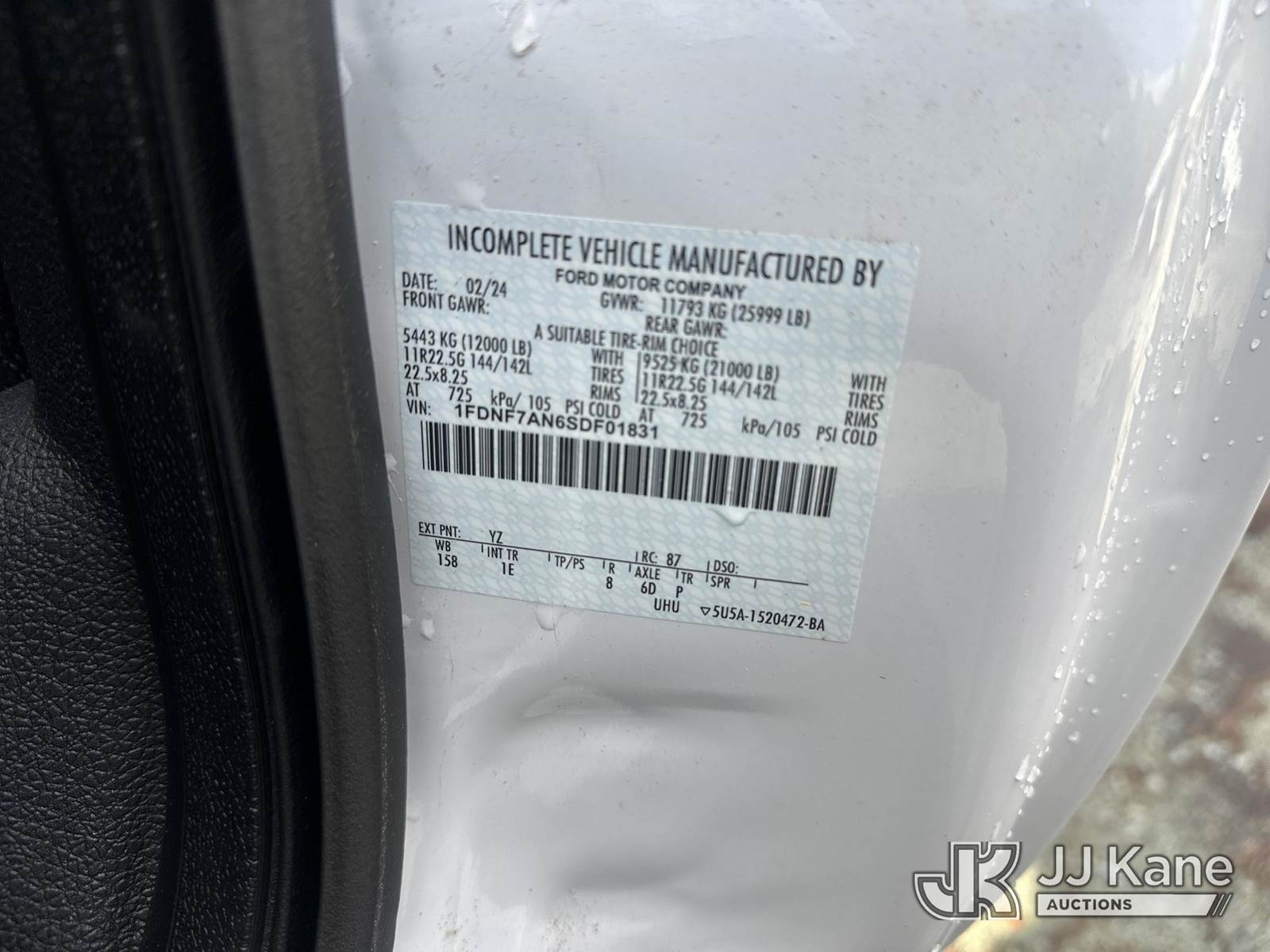 2025 Ford F750 Cab & Chassis, 8-cyl gas, Auto, A/C, (59 miles) (MSO ONLY) (Runs & Moves) This is a Titled Item NOTE: This unit is being sold AS IS/WHERE IS via Timed Auction and is located in Roxboro, NC. For pre-sale questions or to schedule an inspection, please contact Jarrod Bains @ (205) 213-1246. (Buyer is responsible for removal. Assistance by consignor or JJ Kane Auctions is not assured.)