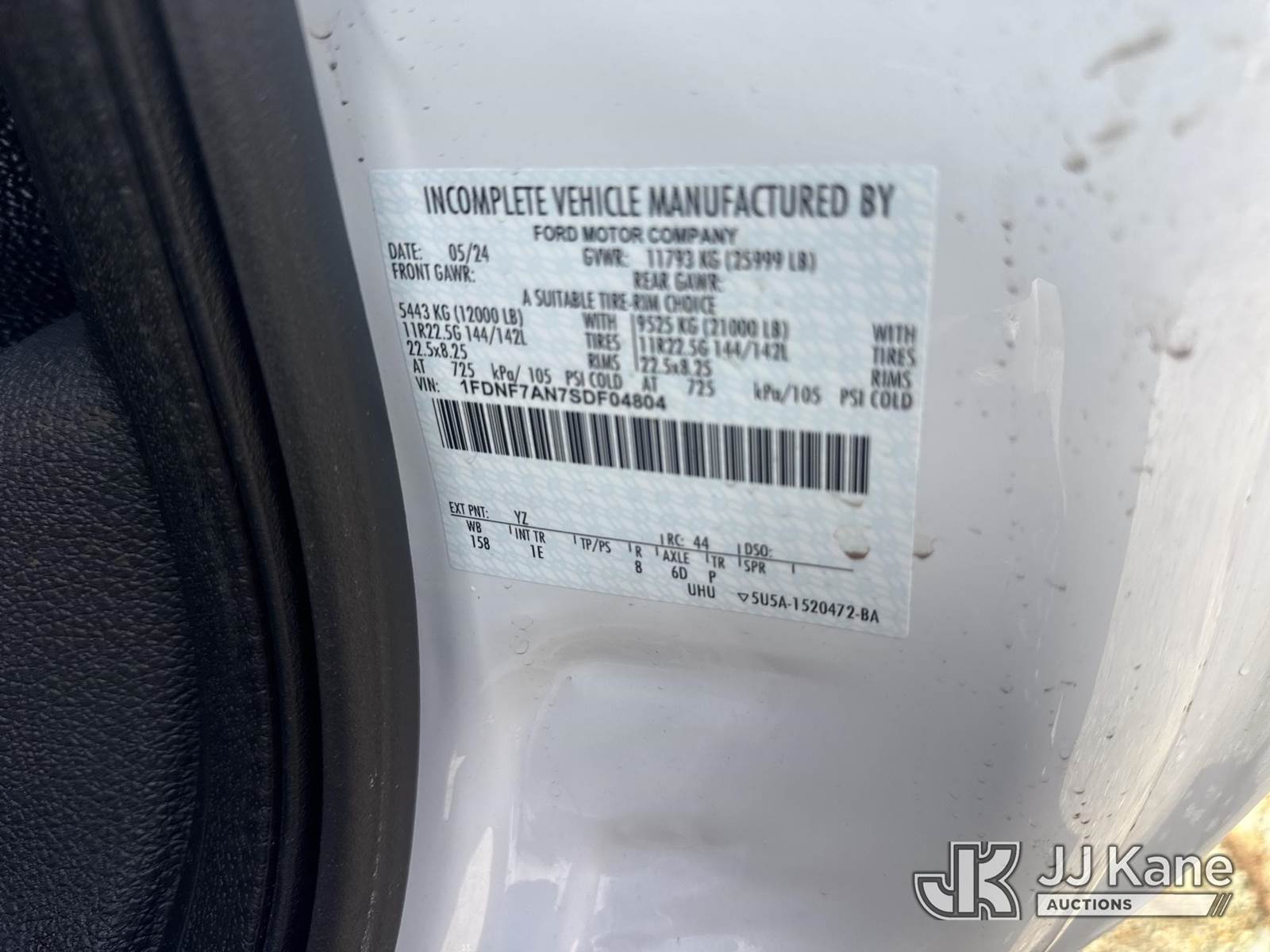 2025 Ford F750 Cab & Chassis, 8-cyl gas, Auto, A/C, (52 miles) ((MSO ONLY) (Runs & Moves) (Jump To Start) This is a Titled Item NOTE: This unit is being sold AS IS/WHERE IS via Timed Auction and is located in Roxboro, NC. For pre-sale questions or to schedule an inspection, please contact Brent Stephens @ (205) 874-5243. (Buyer is responsible for removal. Assistance by consignor or JJ Kane Auctions is not assured.)