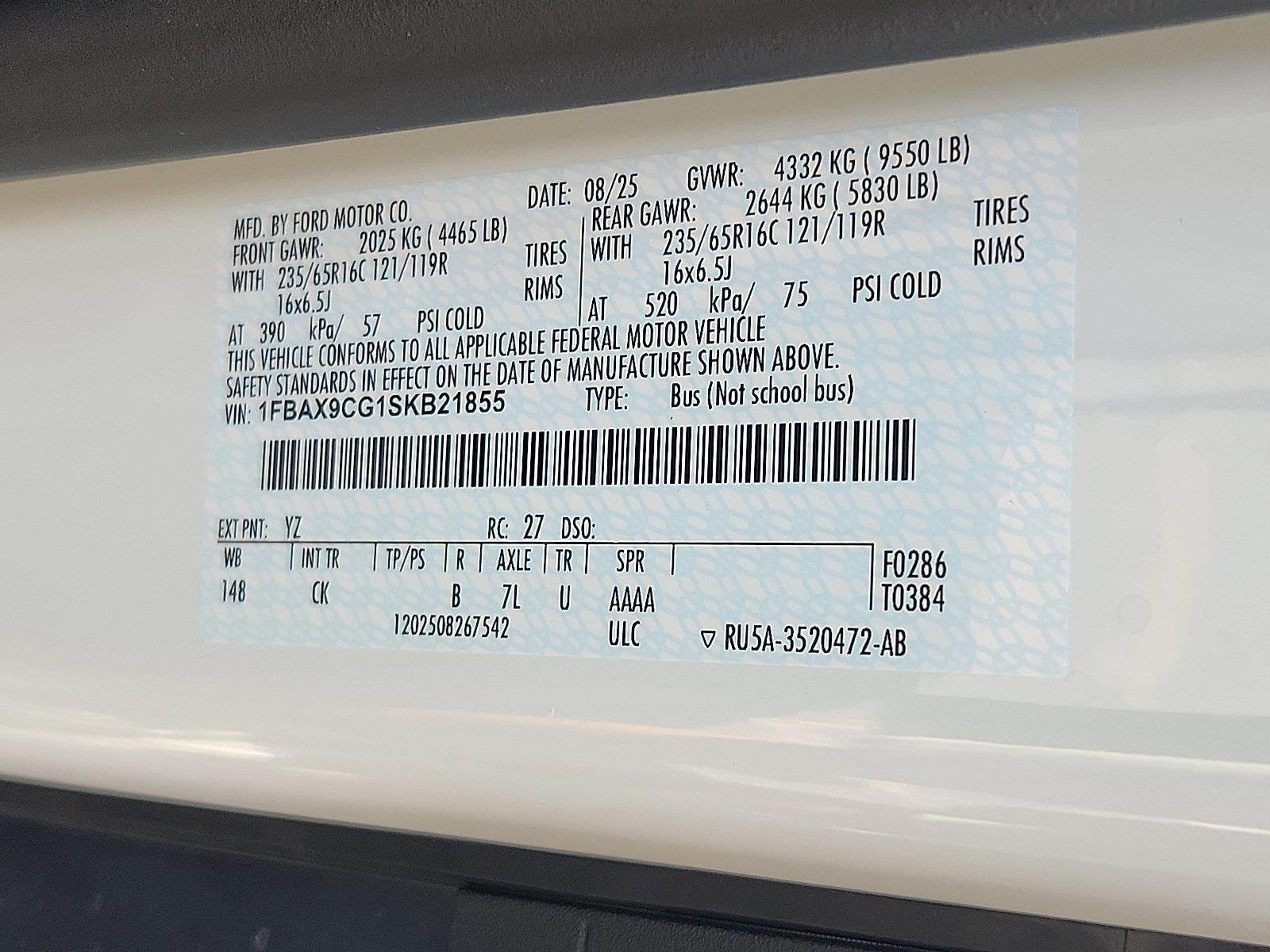 Check out all these great options on this vehicle: Heavy-Duty Trailer Tow Package (Frame Mounted Hitch Receiver and Tow/Haul Mode w/Trailer Wiring Prov), 15-Passenger Seats, 2 Additional Keys (4 Total), 253-Degree Rear Door, 3.73 Limited-Slip Axle Ratio, 360-Degree Camera w/Split View, 3rd row seats: split-bench, 4-Wheel Disc Brakes, 4th-Row Bench Seat, 8 Speakers, ABS brakes, Air Conditioning, AM/FM radio, Auto High-beam Headlights, Brake assist, Cloth Front Bucket Seats, Dark Palazzo Gray Cloth Bucket Seats, Delay-off headlights, Driver door bin, Driver vanity mirror, Driver's Seat Mounted Armrest, Dual AGM Batteries (70 Amp-hr Each), Dual front impact airbags, Dual front side impact airbags, Electronic Air Temperature Control, Electronic Stability Control, Front anti-roll bar, Front Bucket Seats, Front Fog Lamps, Front License Plate Bracket, Front reading lights, Front Sensing System, Front wheel independent suspension, Fully automatic headlights, Honeycomb Mesh Grille w/Chrome Surround, Illuminated entry, Intelligent Access w/Push-Button Start, Internet access capable: FordPass Connect 4G, Keyless Entry Keypad, Large Center Console, Low tire pressure warning, Midship Extended Range Fuel Tank (31 Gallons), Occupant sensing airbag, Overhead airbag, Panic alarm, Passenger door bin, Passenger Running Board, Passenger seat mounted armrest, Passenger vanity mirror, Power door mirrors, Power steering, Power windows, Privacy Glass, Radio: AM/FM Stereo w/SYNC 4 & Nav, Rain sensing wipers, Rear air conditioning, Rear window defroster, Rear-Window Defroster, Remote keyless entry, Remote Start, Reverse Sensing System, Side Sensing System, Speed control, Steering wheel mounted audio controls, Tachometer, Telescoping steering wheel, Tilt steering wheel, Traction control, Trailer Brake Controller (TBC), Variably intermittent wipers, and Wheels: 16" Silver Steel w/Exposed Lug Nuts.