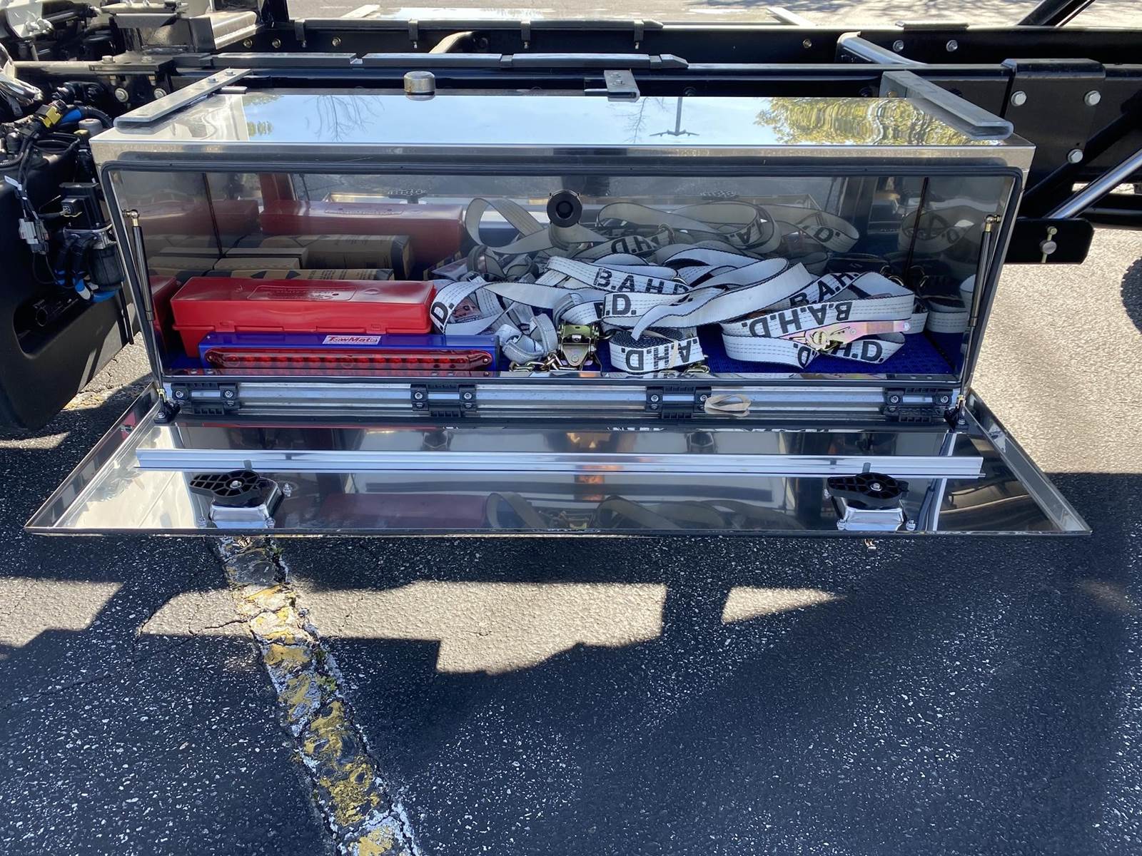 • Additional Features: Air ride suspension, winch with work light, two 40-gallon fuel tanks, and two 60” toolboxes.