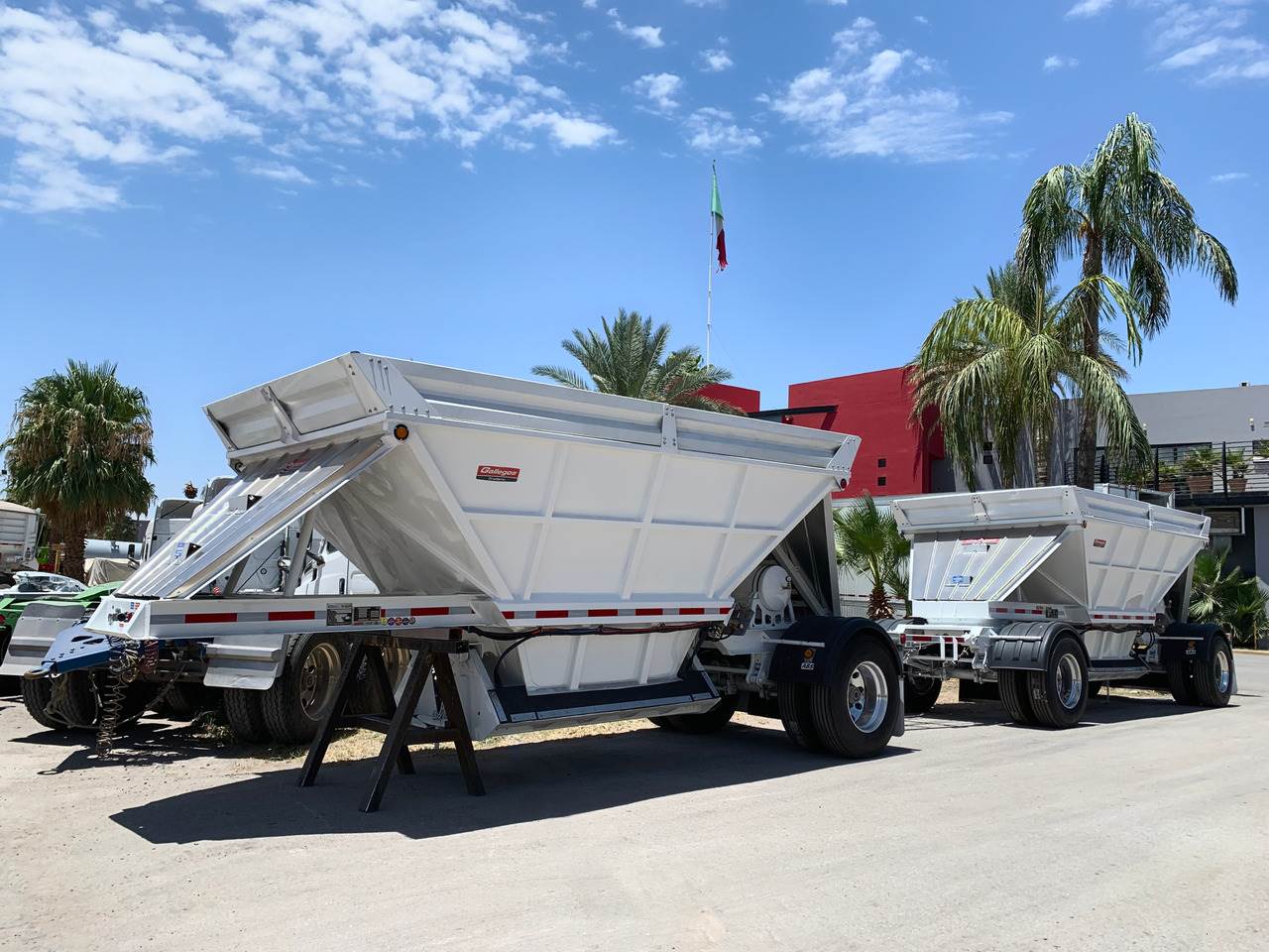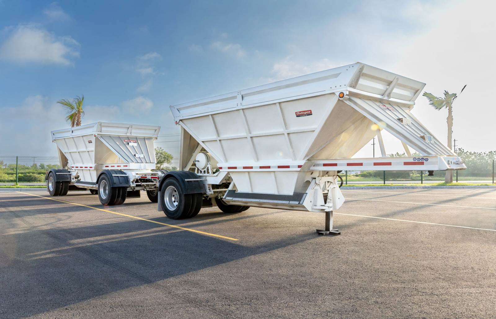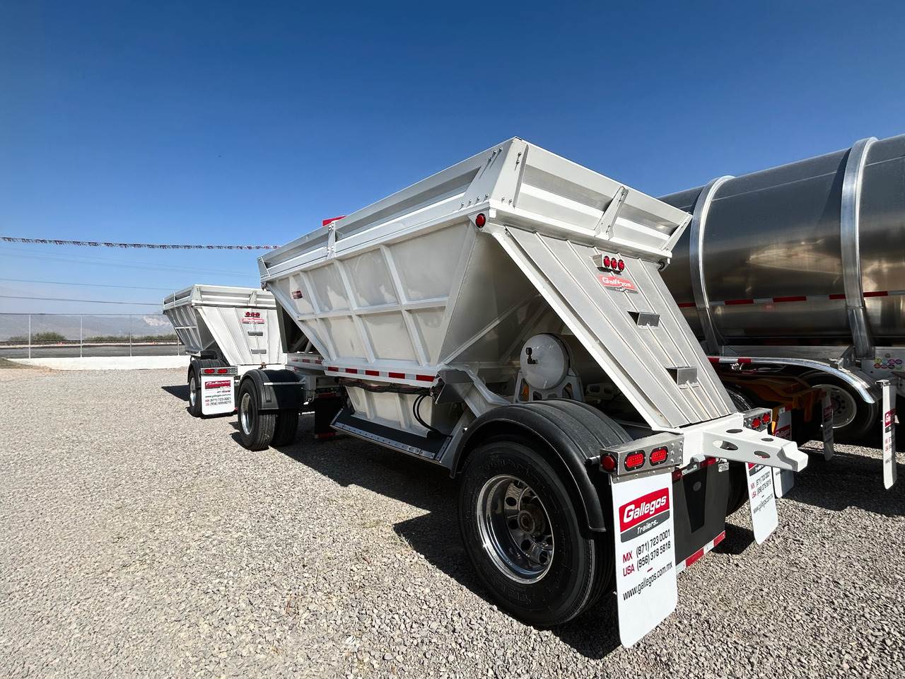 2025 NEW GALLEGOS STEEL DOUBLE BOTTOM DUMP TRAILER (Front Dump) "DIRT DAUBER" Heavy Duty | Ready to Work CALIFORNIA BOTTOM DUMP Capacity 26 Yds3. Available in hybrid aluminum and stainless steel wall combinations Available with super singles or dual tires. Wide Variety of Dump Box Trailer combination. Ideal for transport of aggregates and asphalt. Brand new Gallegos double bottom dump trailer built for high productivity, durability, and reliable performance. Designed for efficient hauling and controlled material spreading, this trailer is perfect for transporting sand, gravel, asphalt, aggregate, and other bulk materials. Featuring a heavy-duty steel construction with a clean white finish, this unit offers long service life and a professional appearance. The double bottom dump design allows for smooth, even unloading to help maximize efficiency on every job. ✅ Heavy-duty frame and reinforced construction ✅ Double bottom dump with air gate system ✅ Tandem axle lead trailer with pup trailer ✅ Durable suspension for smooth hauling ✅ High side walls for increased capacity ✅ Commercial-grade components throughout ✅ Ready for immediate service Ideal for contractors, owner-operators, fleets, and construction companies looking for dependable hauling equipment.