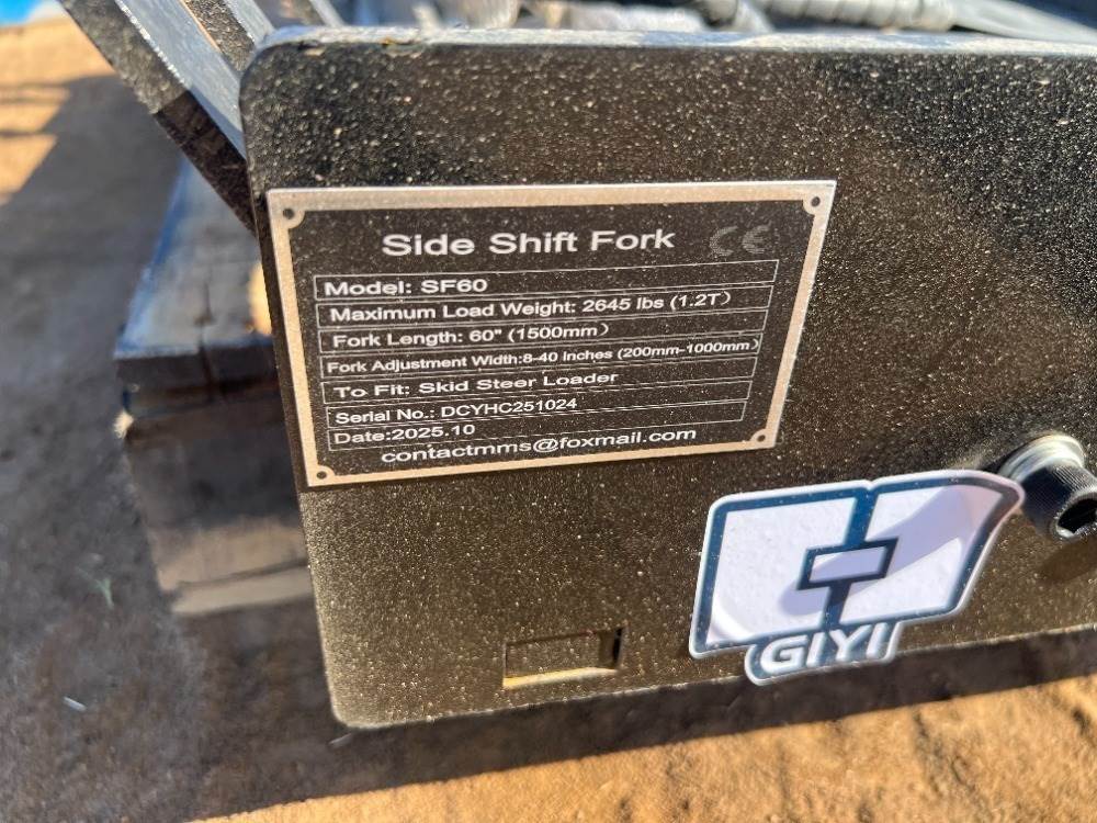 (2) 2025 GIYI SF60 SIDESHIFT FORK CARRIAGE W/5' FORKS, fits skidsteer. s/n:DCYHC251024 --(LOCATED IN MADERA, CA)--