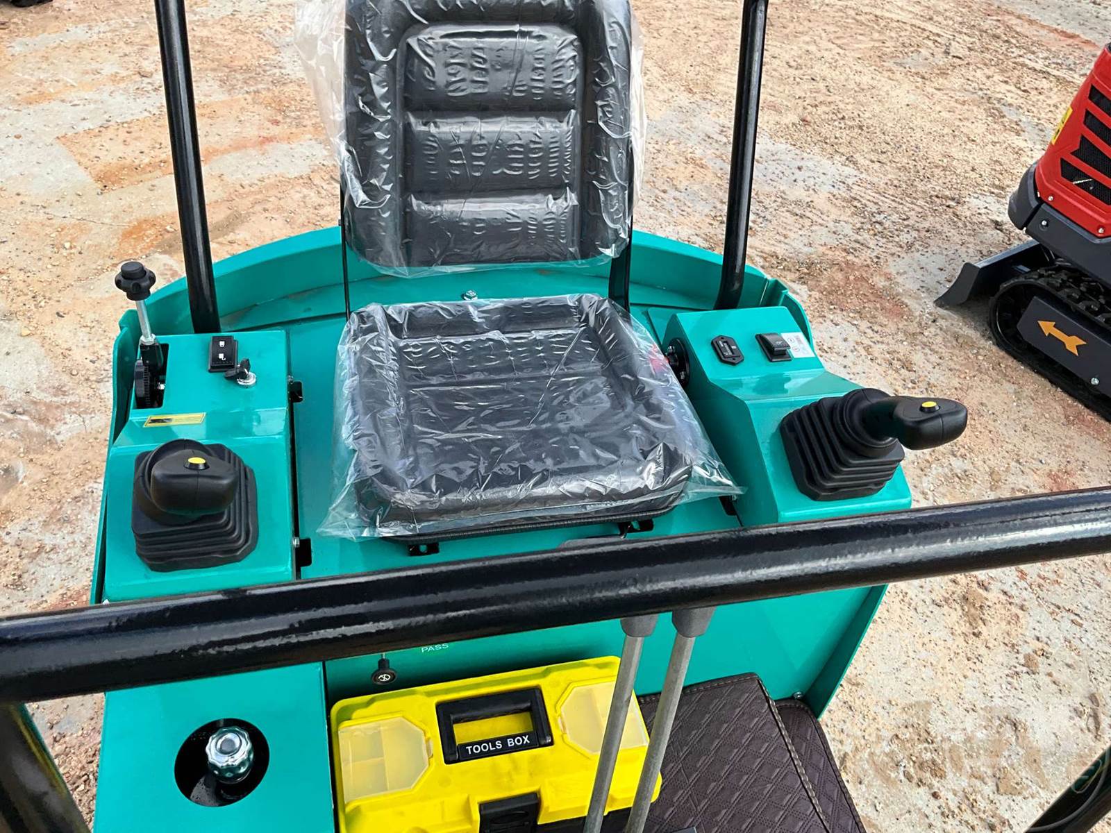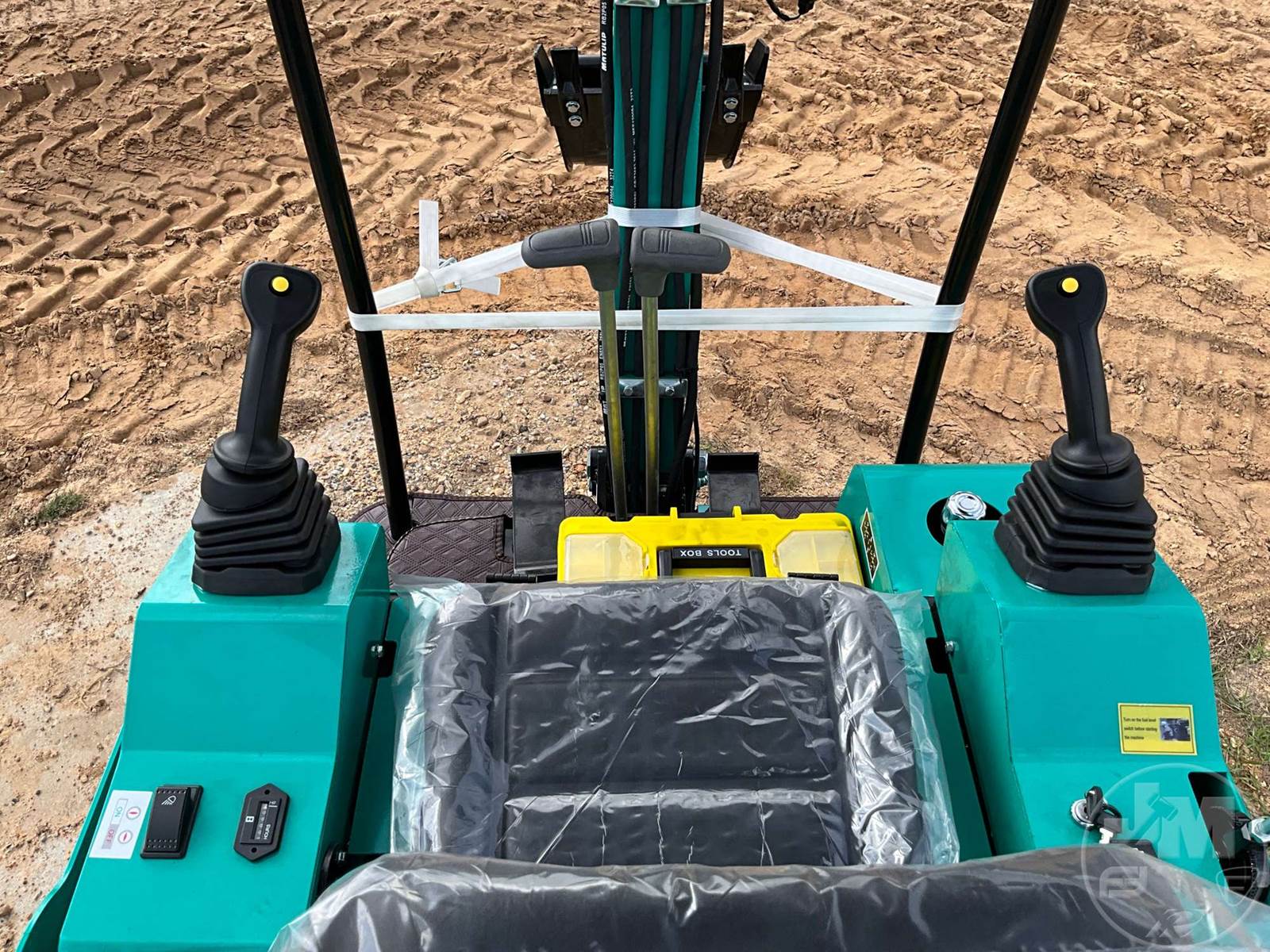MINI EXCAVATOR, 2'7 STICK, 16" BUCKET, MANUAL COUPLER, HYDRAULIC THUMB, S/L DRIVE PEDAL, DOZER, RUBBER TRACKS, HOUR METER READS: 0