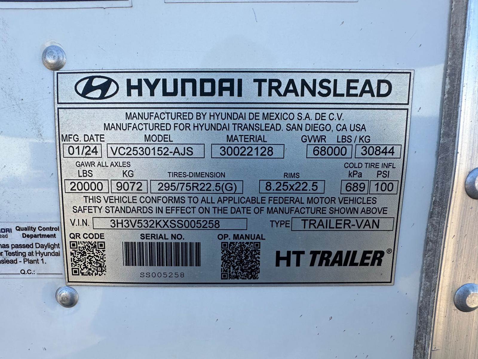 Whether you're looking to expand your fleet or replace an older unit, this 2025 Hyundai dry van offers reliable performance at a competitive price. Salvage Title Disclaimer This trailer is being sold with a salvage title. It has undergone prior damage and may require repairs or inspection depending on your state’s regulations. Buyer is responsible for verifying all title, registration, and roadworthiness requirements. Trailer has a 30 day warranty.
