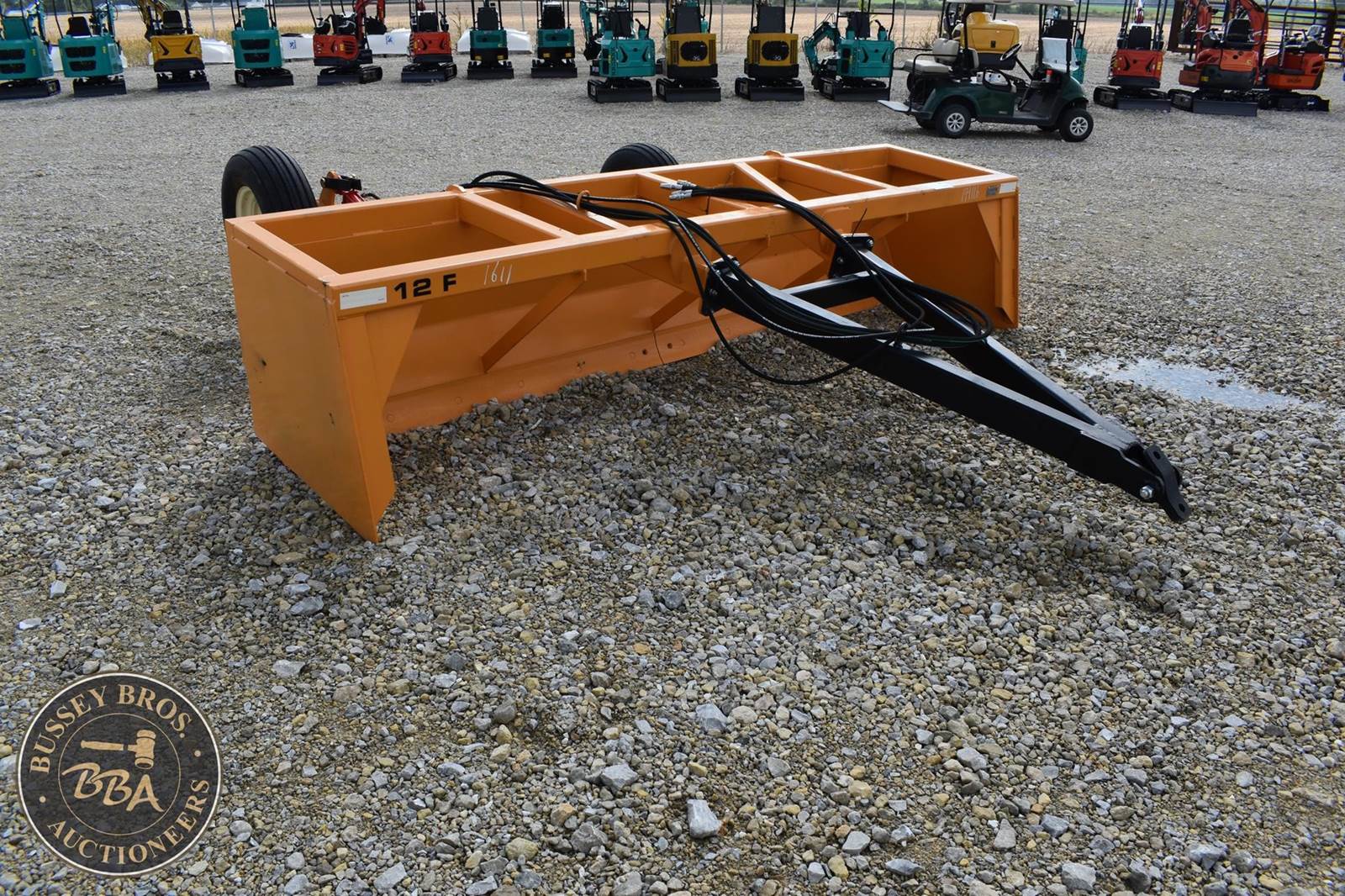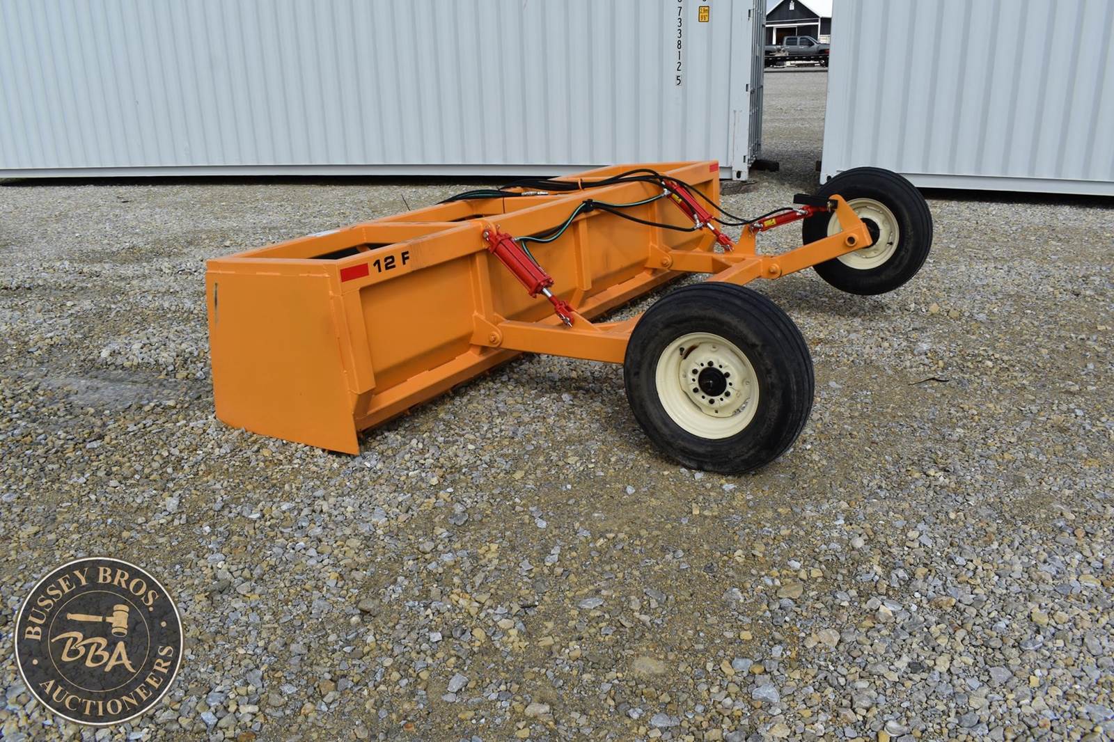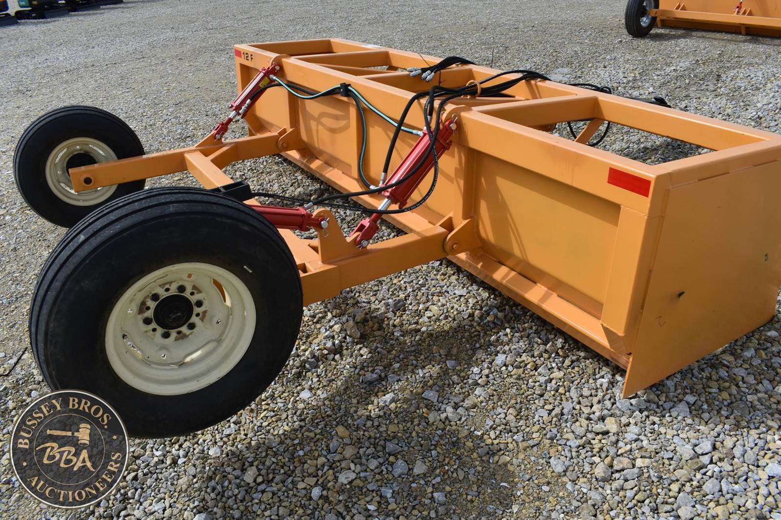 Industrias America 12F Grader Box, pull type dual hydraulic lift, rear wheels, NEW/UNUSED SN: 12F202539896