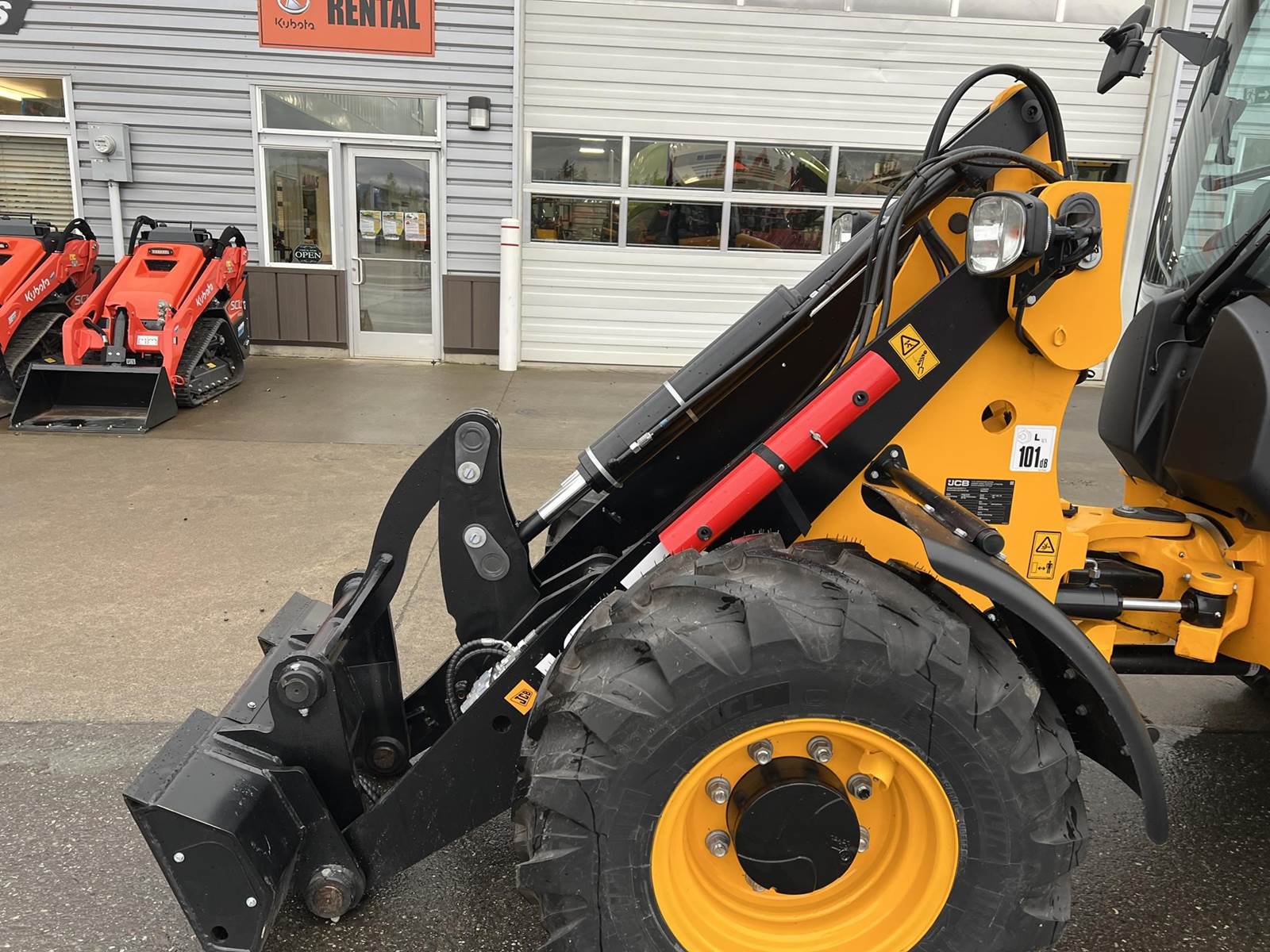 2025 JCB 407 AGRI Wheel Loader - Kohler turbocharged diesel engine, 64HP, hydrostatic transmission, top speed of 22 MPH, 11,486 operating weight, 9'-10" load over height, 10'-3" pin height, articulated steering system, central operating position, tilting, telescopic steering column. Bucket included (not pictured)