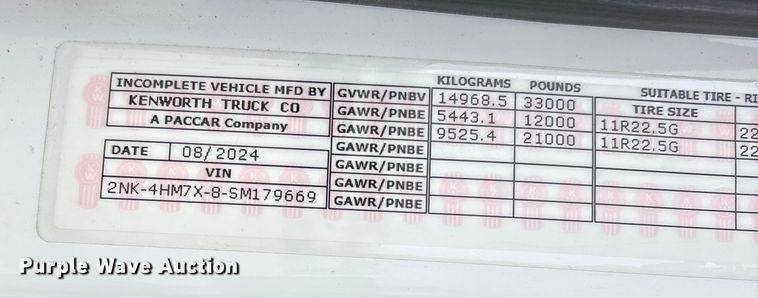 2025 Kenworth T600 grapple truck, Miles: 15,855 on odometer, Miles or hours may vary, unit still in use, VIN: 2NK4HM7X8SM179672, Engine,...